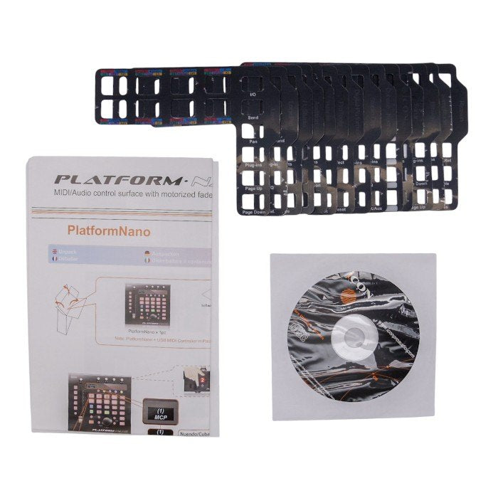 | 機能特徴 | フルサイズのモーターライズドフェーダー1本を搭載するシンプルなMIDIコントロールサーフェス Platform Nano が、「イン・ザ・ボックス」で音楽制作を行うプロデューサー、エンジニア、ミュージシャンにDAWのハンズオンコントロールをもたらします。 Mackie Control と HUI プロトコルに対応しているため、Cubase、Nuendo、Ableton Live、Pro Tools、Logic、Reason、Studio One、Bitwig、FL Studio、Digital Performer、Sonar、Samplitude、Reaper など、多くの主要DAWをコントロール可能です。また、お使いいただくDAWごとのオーバーレイシートも付属しています。 | |