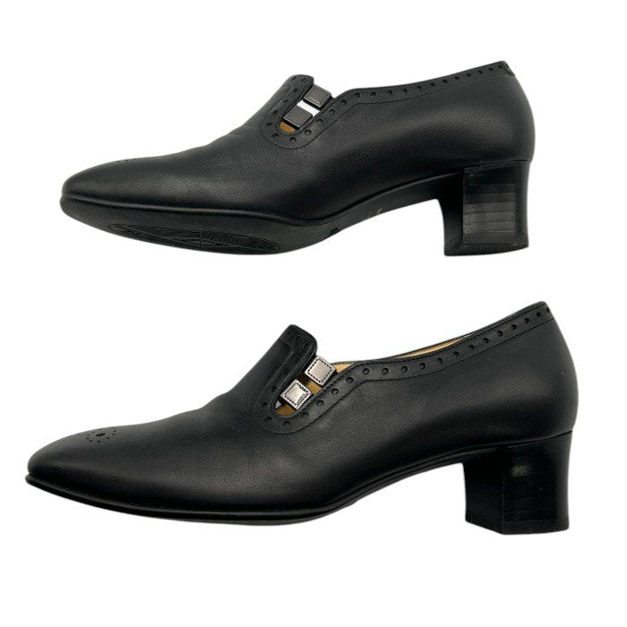 GINZA Yoshinoya 銀座ヨシノヤ レザー パンプス 20.5cm 67402-VG 本革 レディース 小さめ ブラック 靴 シューズ 中古 W4