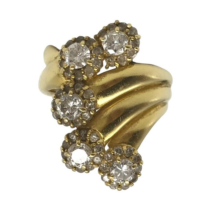 K18/ダイヤ 1.09/0.73ct リング レディース 螺旋 デザインリング イエローゴールド 12号 中古 T1