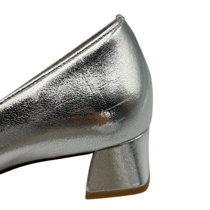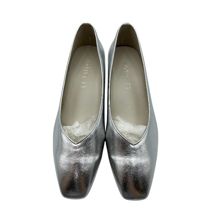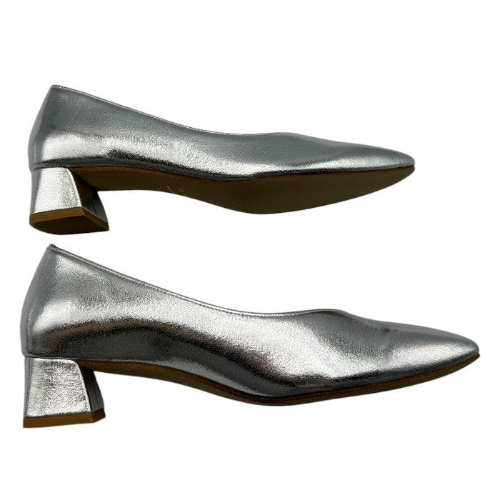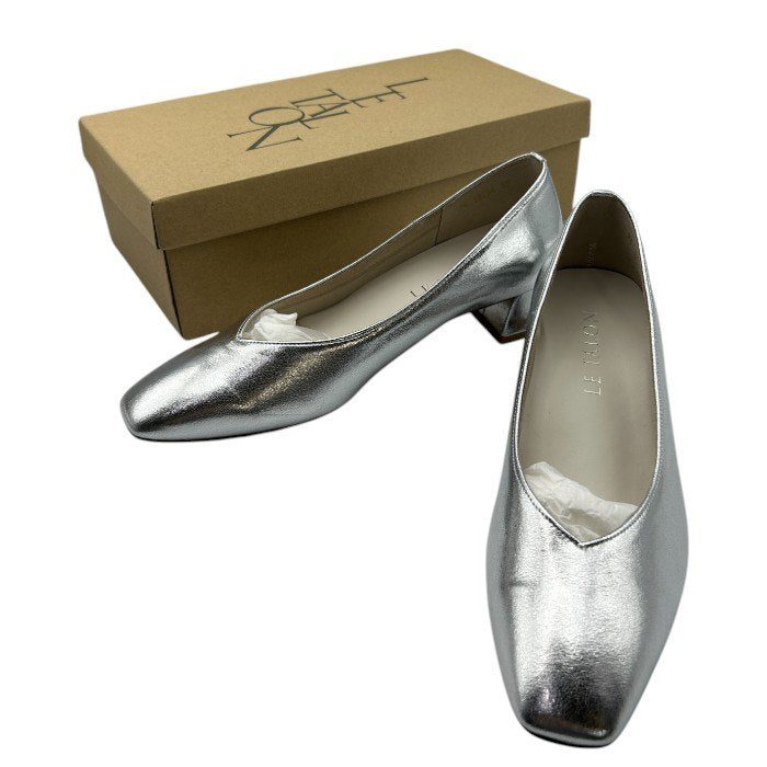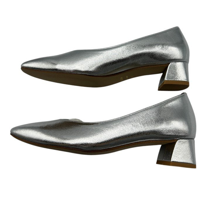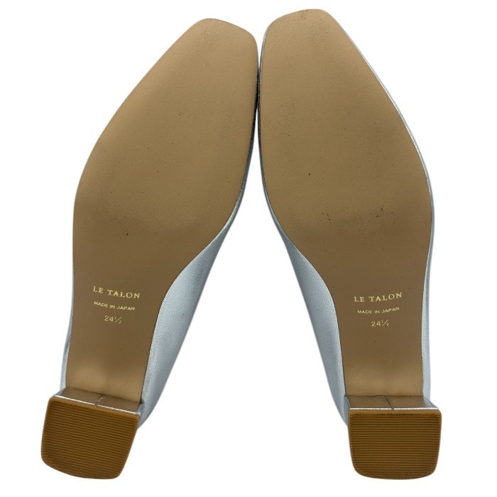 LETALON ルタロン スクエアVカット 4cm パンプス 24.5cm シルバー 靴 シューズ レディース ヒール 中古 W4