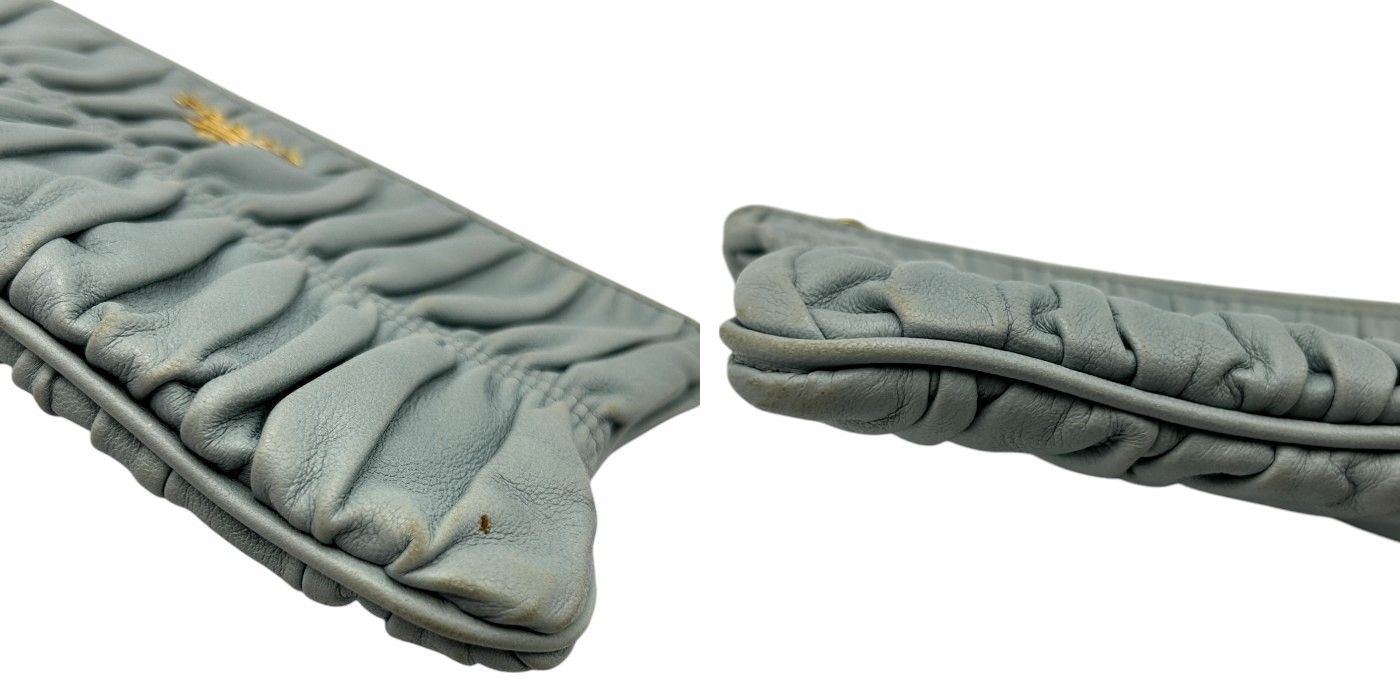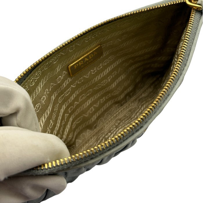 PRADA プラダ フラットポーチ 1M1152 グレー 小物 ブランド ギャザー レディース かわいい ミニ 小さい 中古 W4