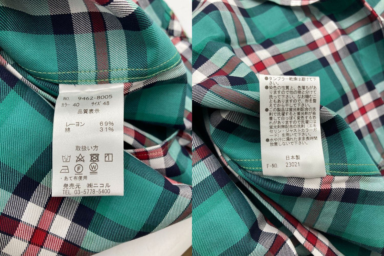 MONSIEUR NICOLE ムッシュニコル チェック柄アラカルトシャツ カッタウェイ サイズ48 長袖 中古 D4