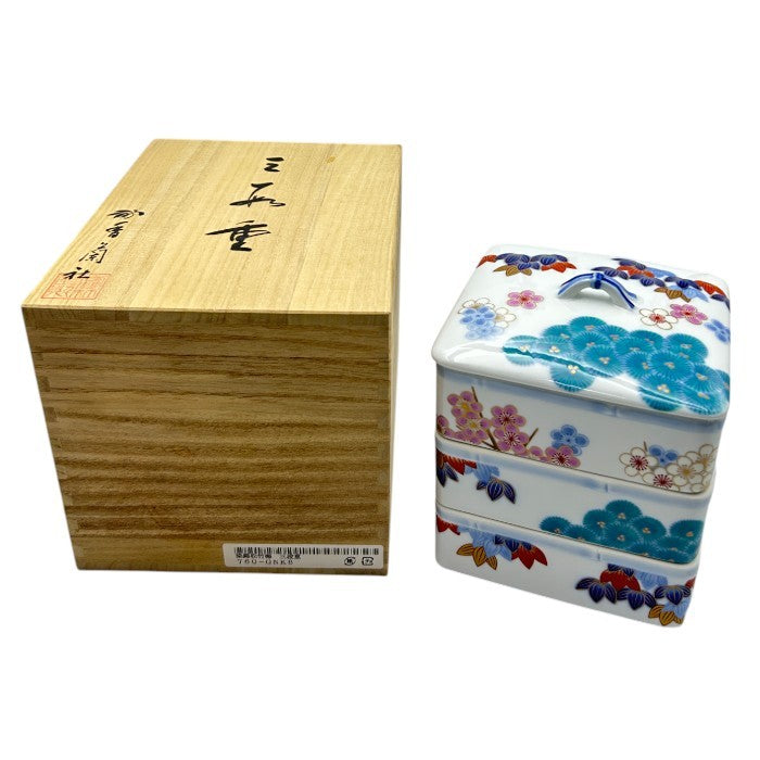 香蘭社 染錦松竹梅 三段重 和食器 重箱 ブランド 弁当 おせち 中古 W4
