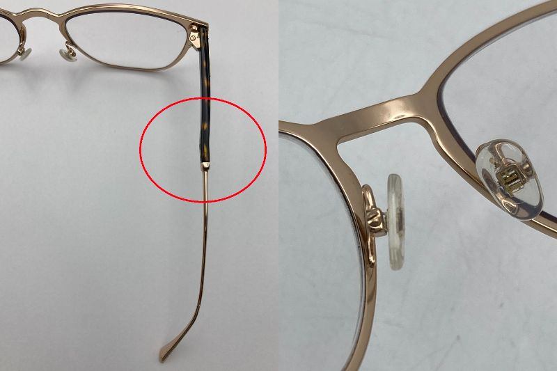 レンズに度が入っております。 フレームやテンプル、レンズにキズがございます。 テンプルに歪みがございます。 |