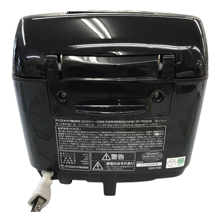 アイリスオーヤマ(IRIS OHYAMA) 炊飯器 圧力IH 5.5合 40銘柄炊き分け機能 極厚火釜 ブラック RC-PD50-B 中古 Y1