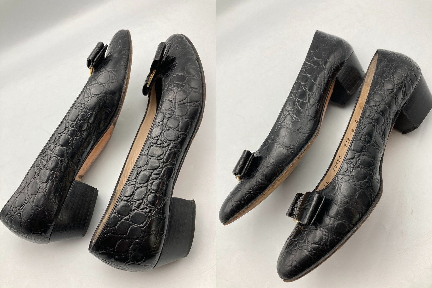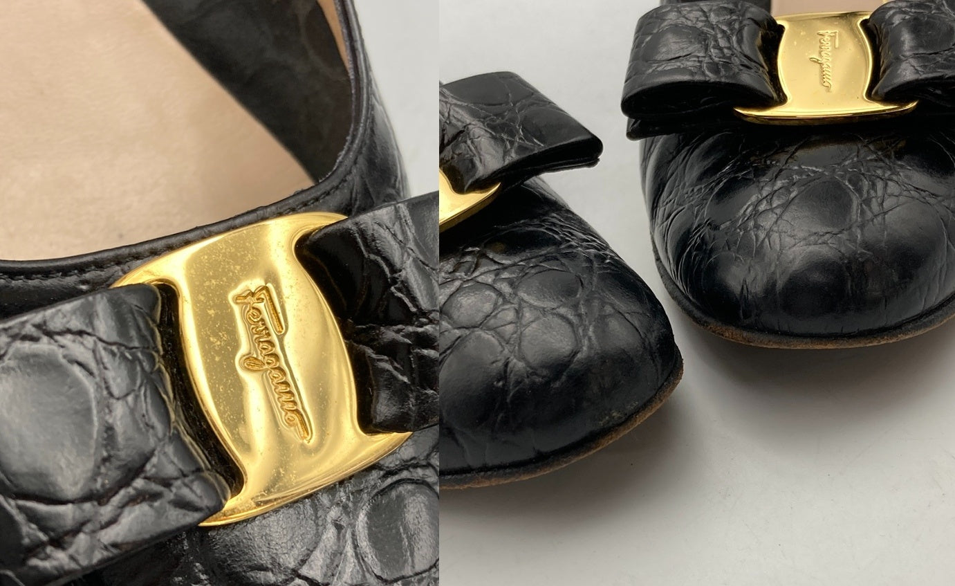 Salvatore Ferragamo サルヴァトーレフェラガモ ヴァラリボン 型押しレザー パンプス サイズ8(約25.5cm) 中古 D4