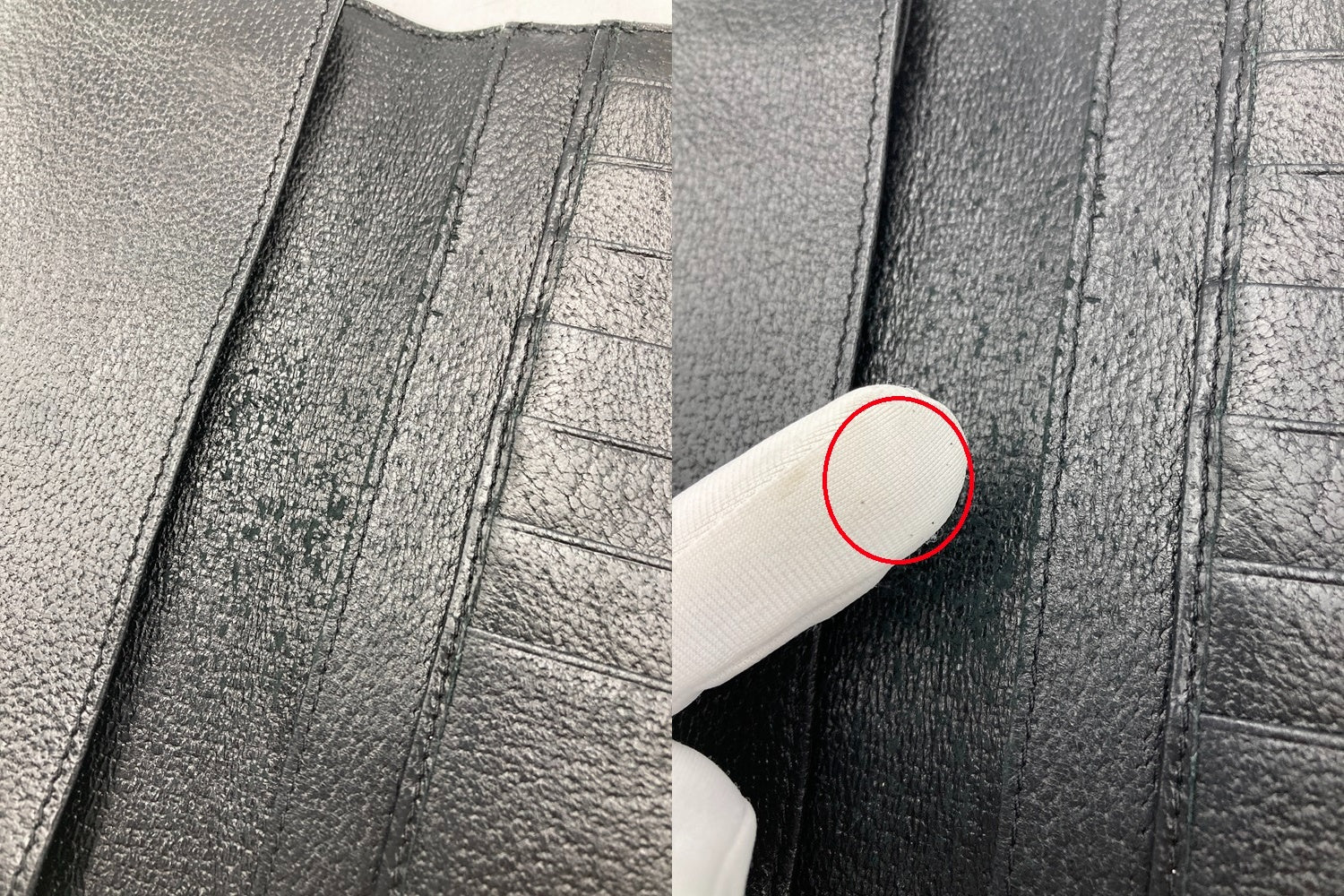 キズや汚れ、型崩れがございます。 内側センターの折り目部分に表面の剥がれがございます。 |