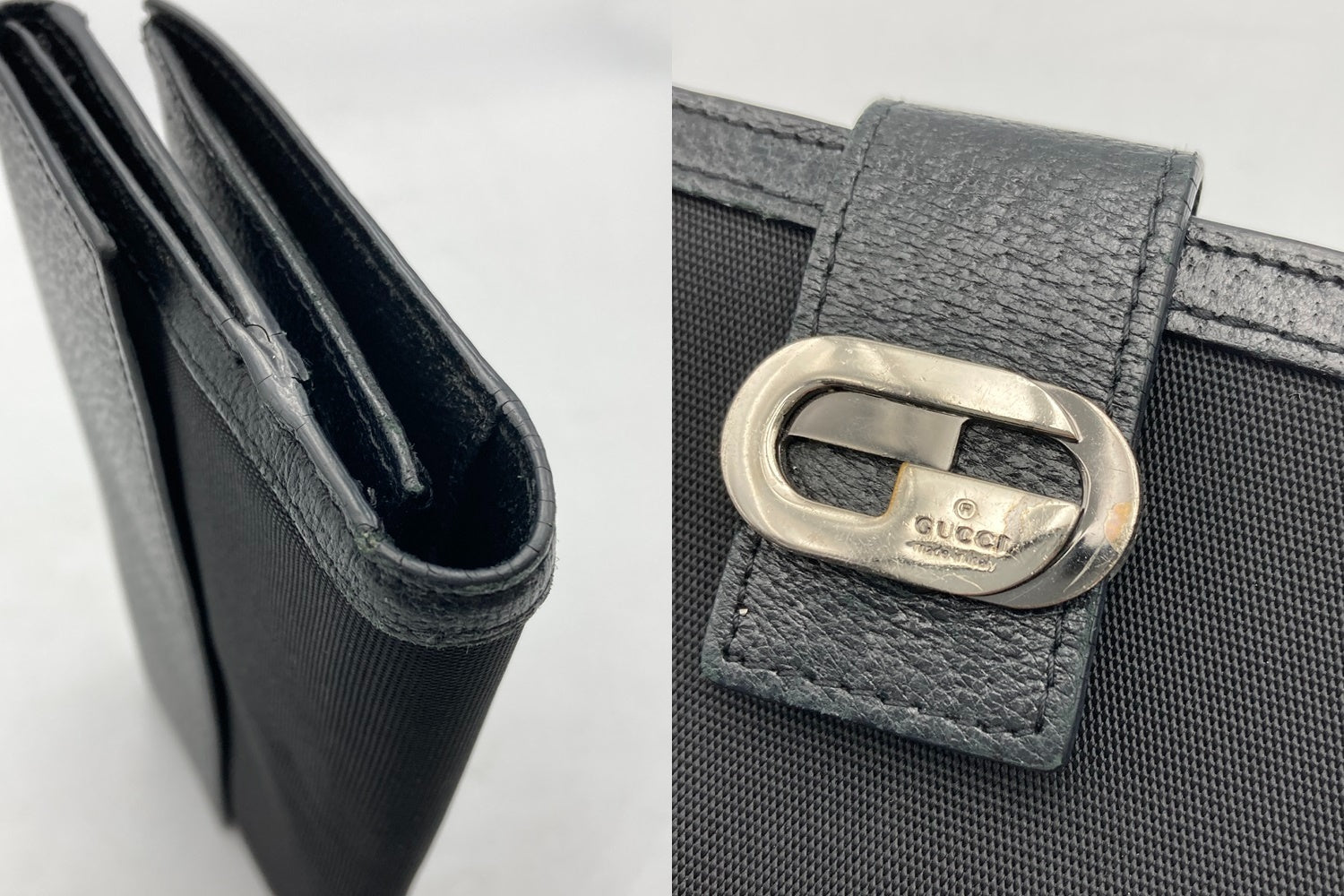 GUCCI グッチ キャンバスレザー Wホック 2つ折り長財布 035 0416 2109 中古 D4
