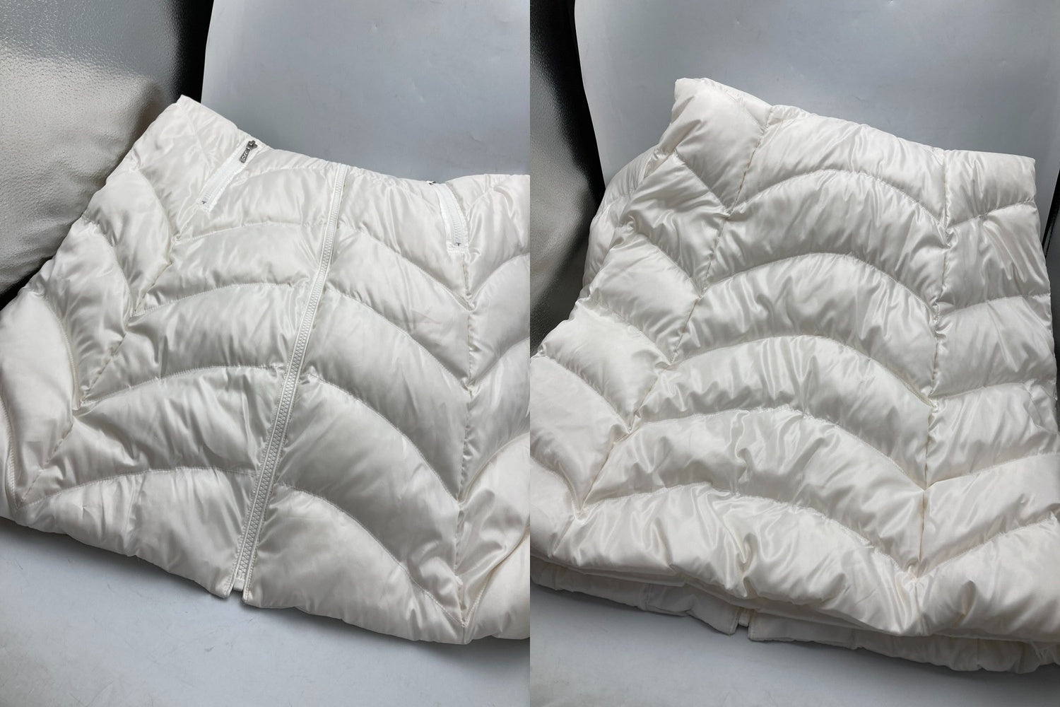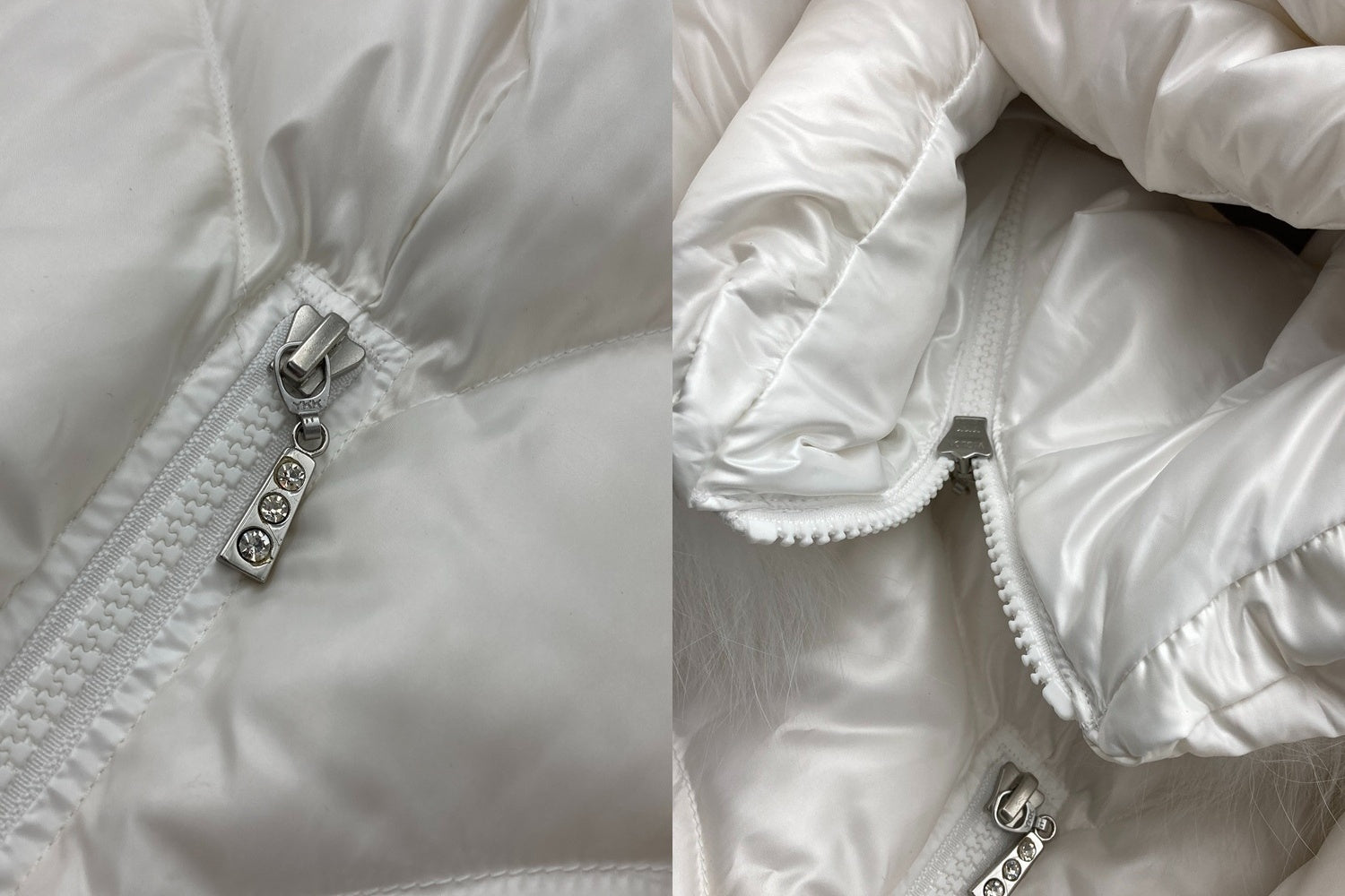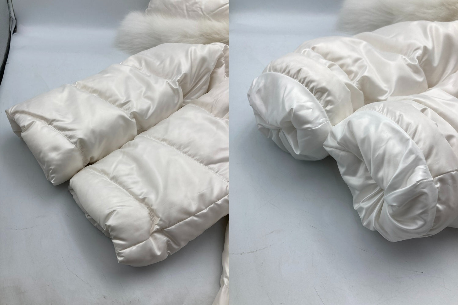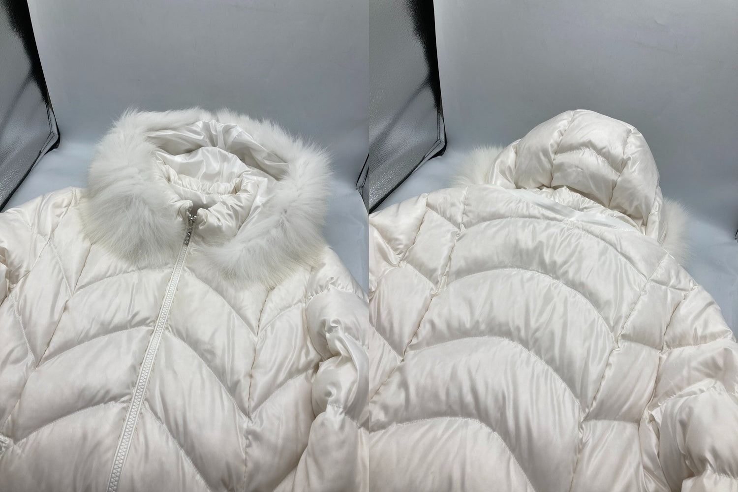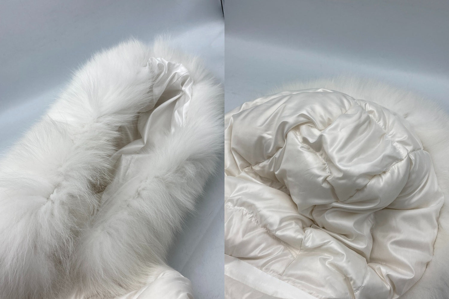 | 素材 | 表地、裏地:ポリエステル100%、詰め物:ダウン90%、フェザー10%、ブルーフォックスファー | |