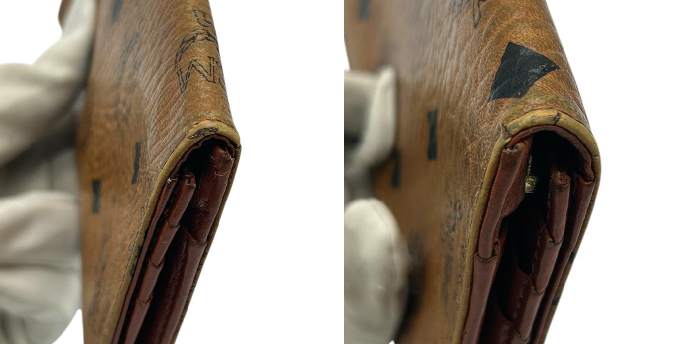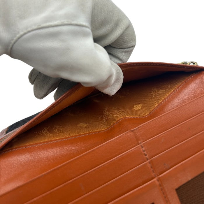 MCM モノグラム 二つ折り長財布 ブラウン 定期入れ 薄型 エムシーエム レディース メンズ ブランド 中古 W4