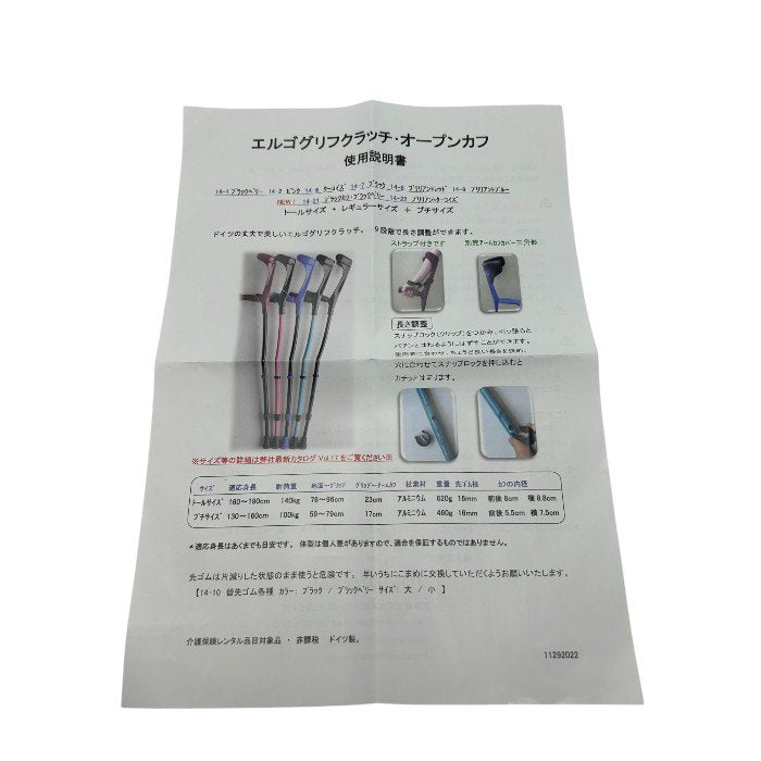 エルゴグリフクラッチ オープンカフ ブルー 杖 ドイツ製 介護 高齢者 中古 W4