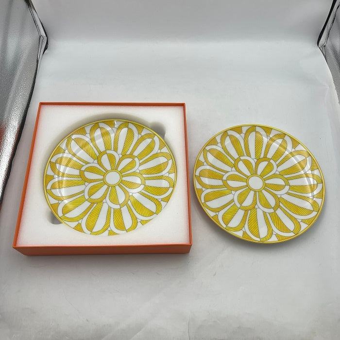 エルメス ソレイユ ドゥ エルメス デザートプレート No.2 ペア 046107P 皿 21cm ケーキ 幾何学模様 中古 R4