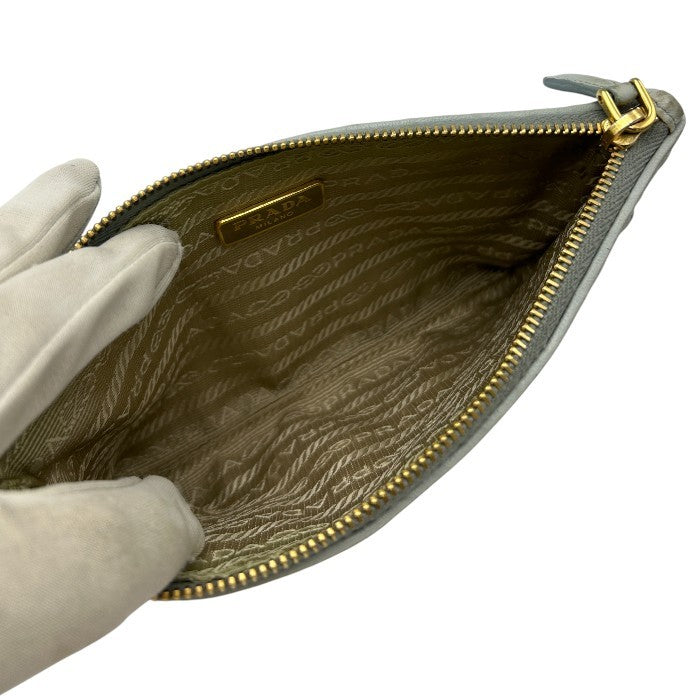 PRADA プラダ フラットポーチ 1M1152 グレー 小物入れ ブランド かわいい おしゃれ ミニ 中古 W4