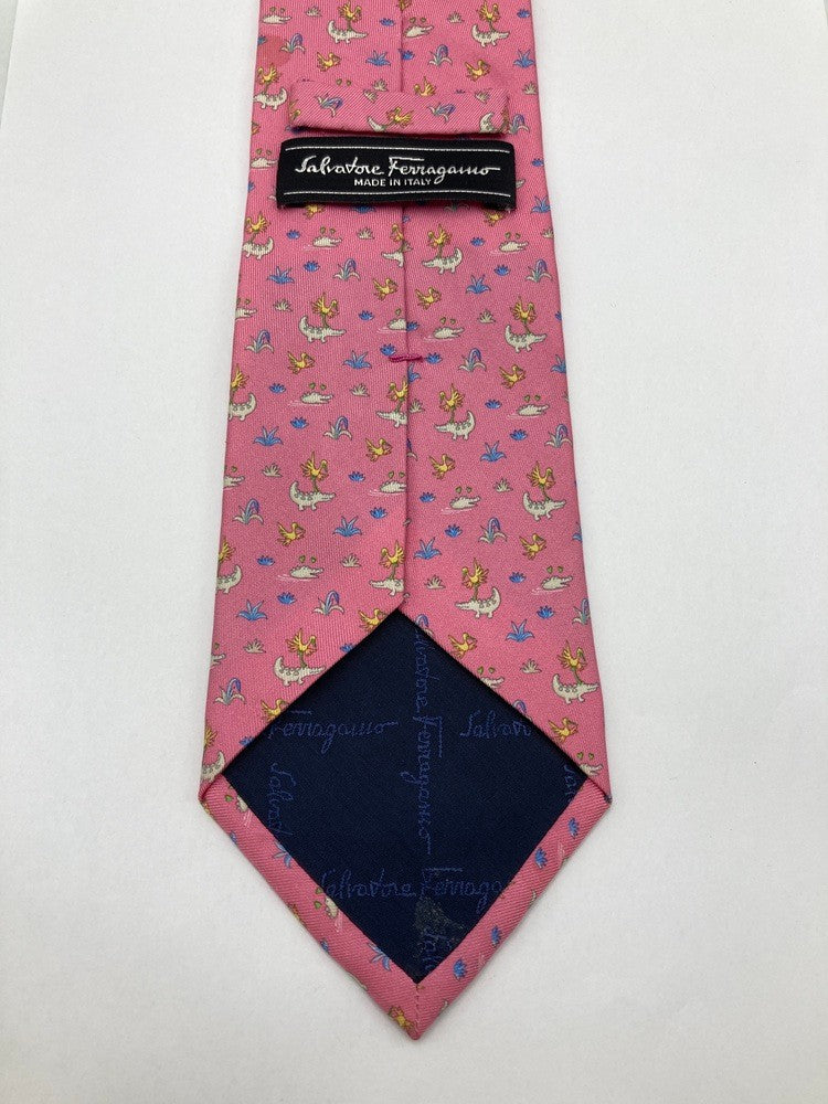 Salvatore Ferragamo サルヴァトーレフェラガモ アニマル ワニ柄 ネクタイ シルク100% 中古 D4