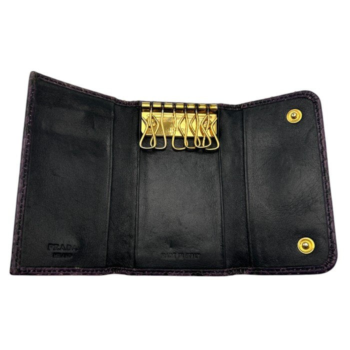 PRADA プラダ パイソン調 6連 キーケース ブランド レディース レザー パープル ブラック 中古 W4