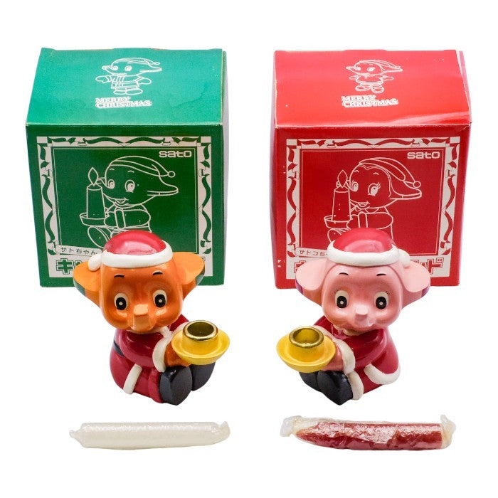 株式会社ニットー サトちゃん サトコちゃん キャンドルスタンド 2体セット クリスマス サンタ服 佐藤製薬 sato 中古 a1