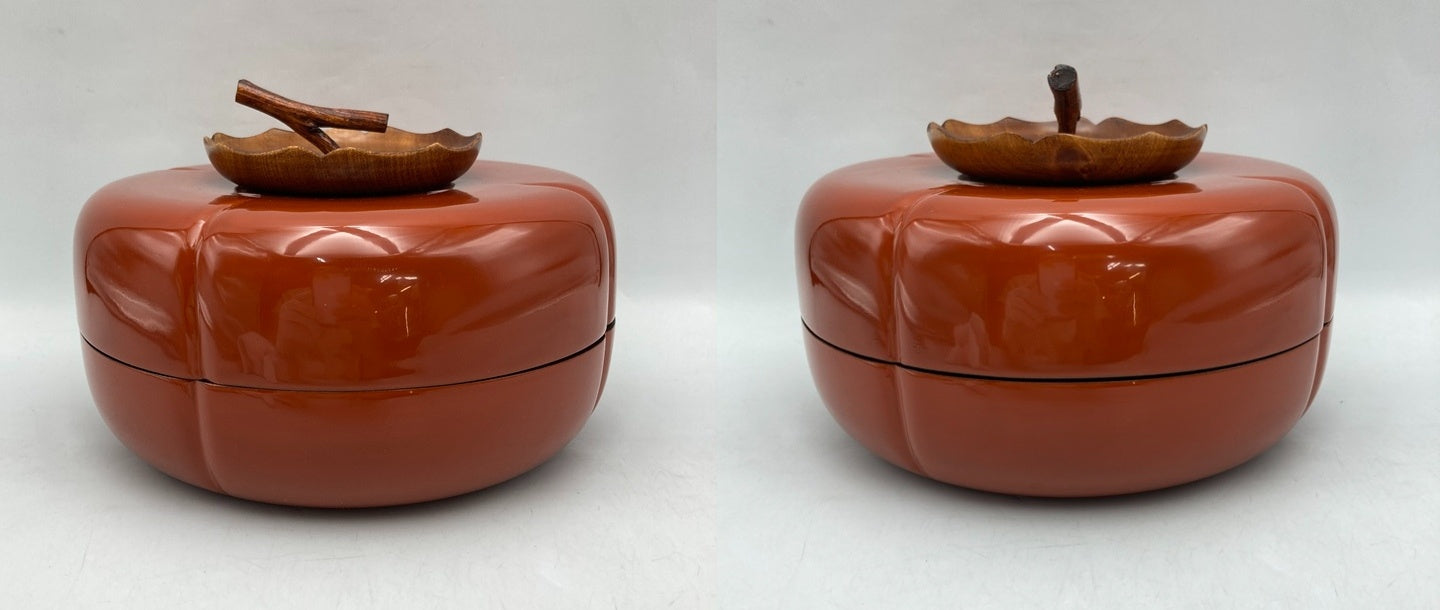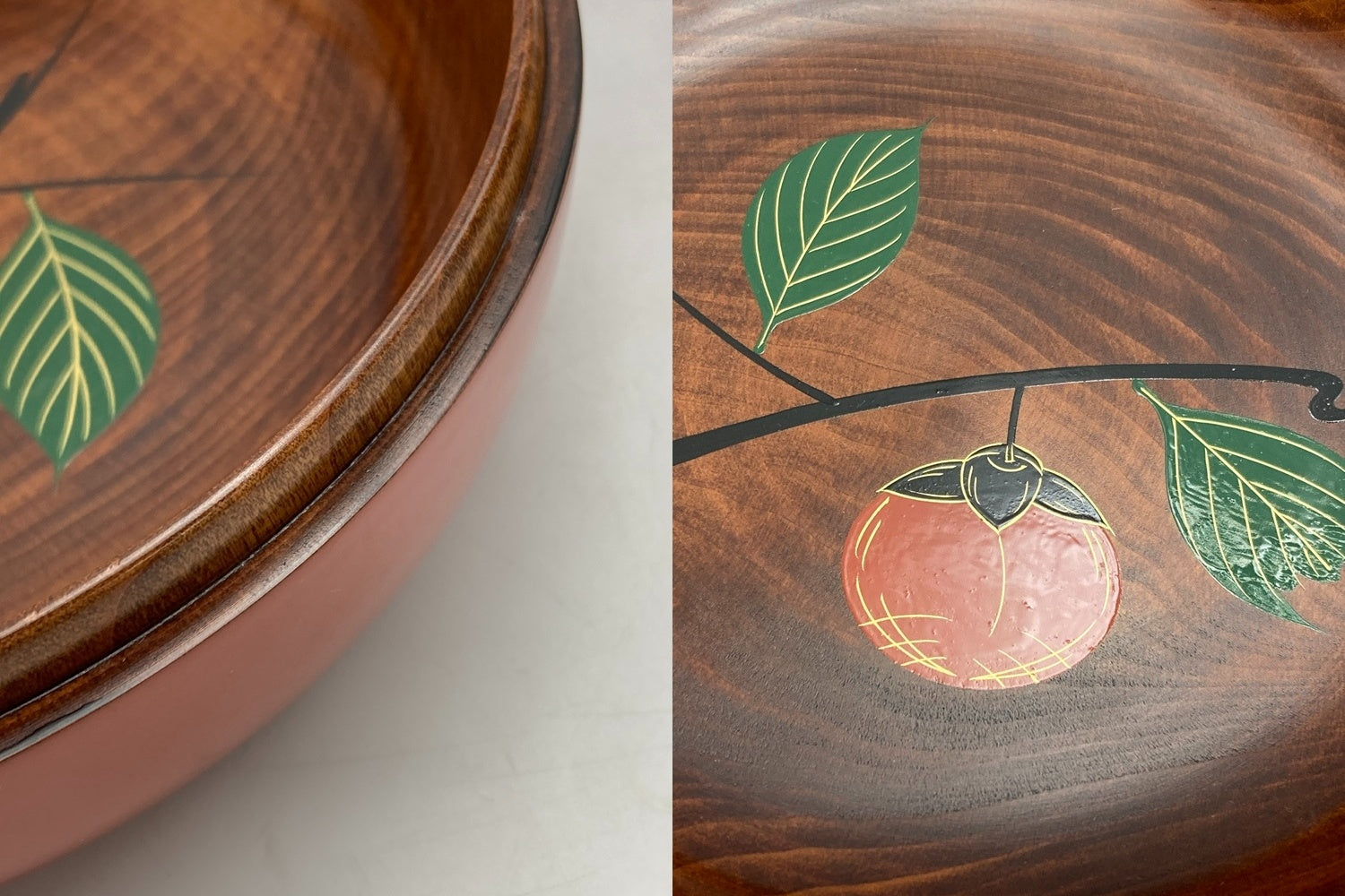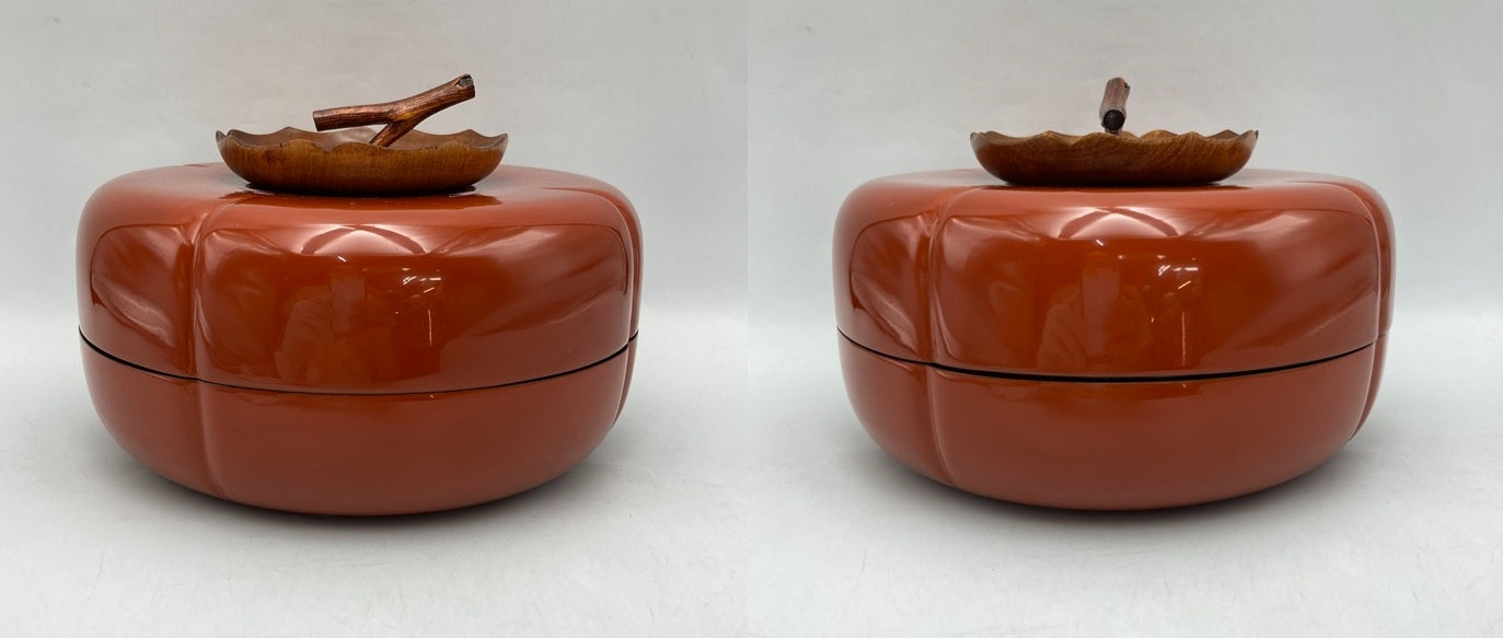 山中塗 雅峰 天然木 うるし塗装 柿型 菓子器 中古 D4