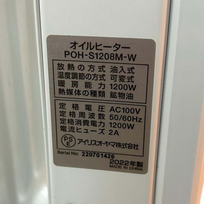 アイリスオーヤマ オイルヒーター タイマー付 3段階 温度調節機能 8畳用 ホワイト POH-S1208M-W IRIS OHYAMA 家電 冬 暖房器具 中古 W4