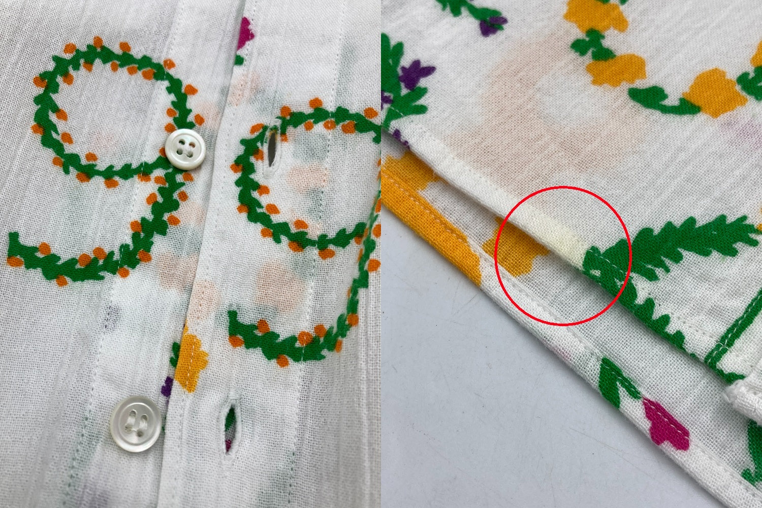 着用感がございます。 毛羽立ちやシワ、裾に一ヶ所シミがございます。 |