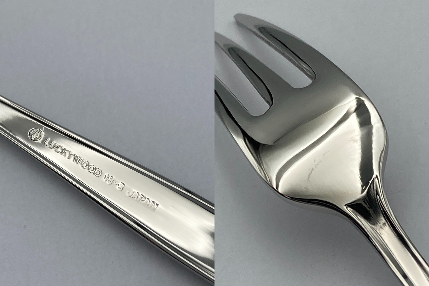 | サイズ | フォーク:19cm、ナイフ:21cm、スプーン:18.5cm、ティースプーン:13cm、デザートフォーク:13cm、スープスプーン:13cm | |