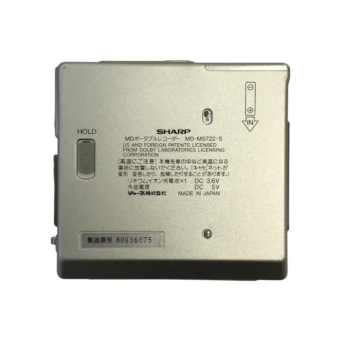 【ジャンク品】 SHARP シャープ ポータブルMDレコーダー シルバー 録再タイプ MDウォークマン MDプレーヤー MD-MS722-S 中古 T1