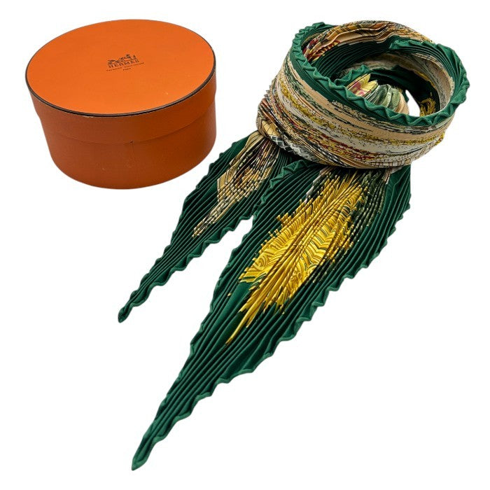 HERMES エルメス プリーツ スカーフ グリーン レディース ブランド おしゃれ 服飾 中古 W4