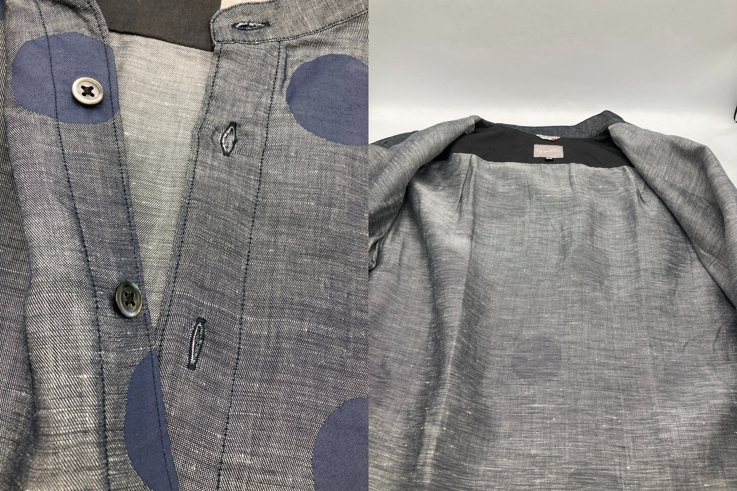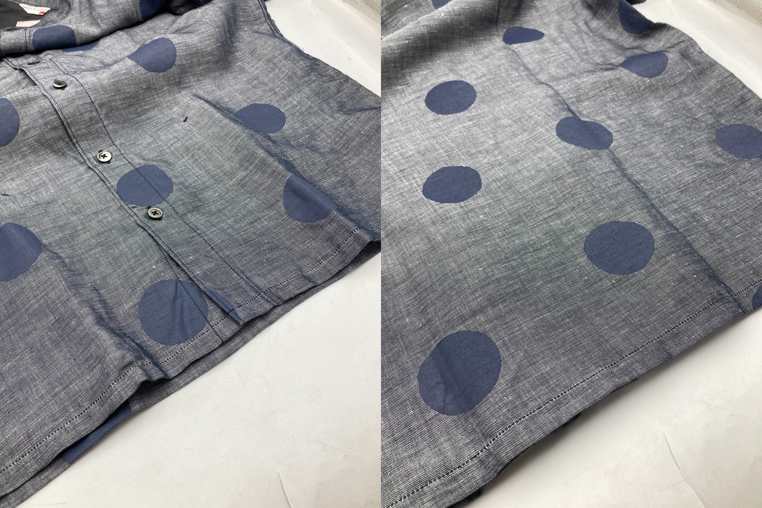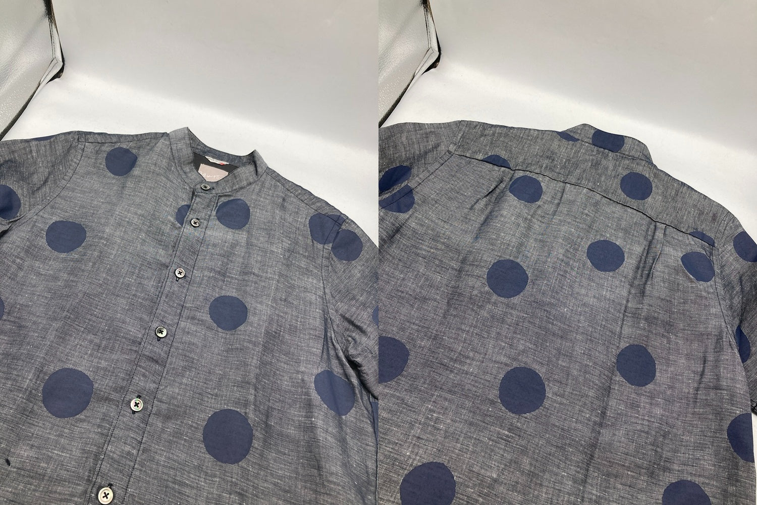 SOU・SOU ソウソウ 京型友禅染 麻混 バンドカラーシャツ 水玉 サイズSS 中古 D4