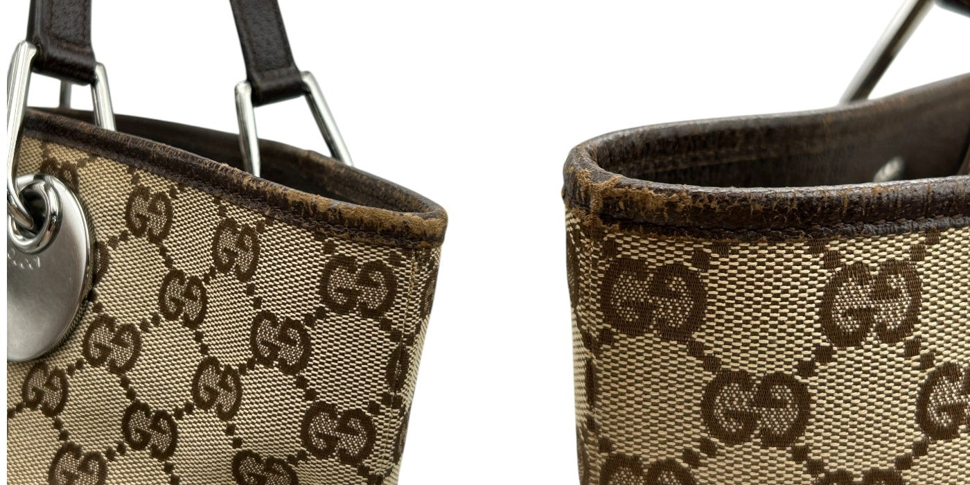GUCCI グッチ GGキャンバス トート バッグ 120836 ブラウン 鞄 ブランド レディース おしゃれ レザー 中古 W4