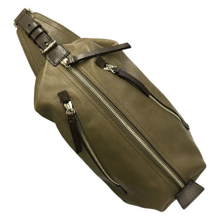 COACH コーチ トンプソン ボディバッグ メンズ パンチング レザー スリングバッグ カーキ 70716 中古 T1