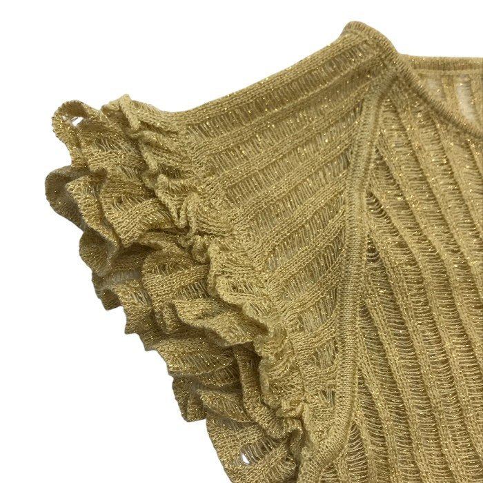 LOUIS VUITTON ルイヴィトン ニットトップス レディース フレンチスリーブ フリル カシミヤ/シルク ラメ セーター ベージュ Mサイズ 中古 T1