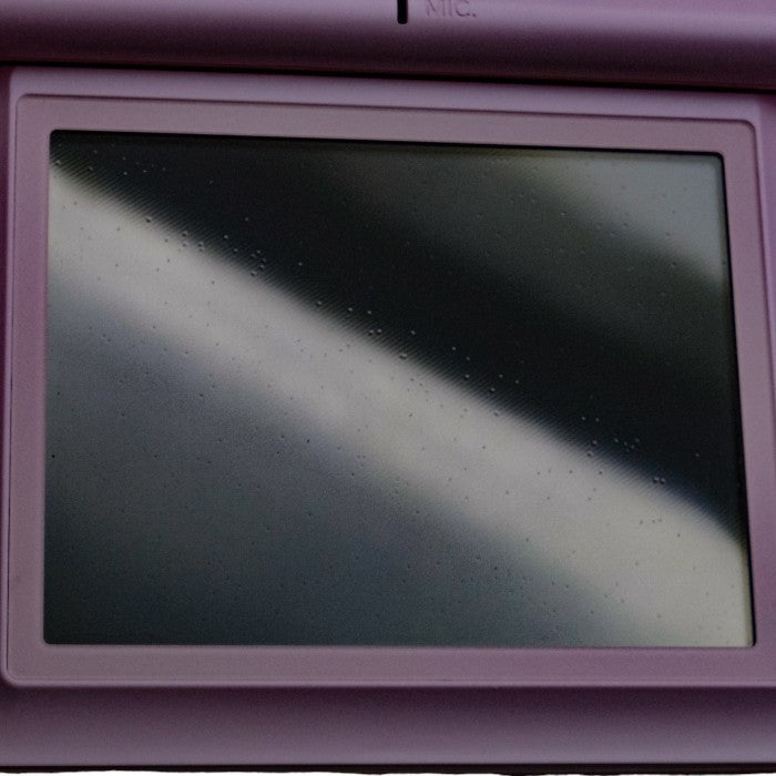 上下とも画面に黄ばみ、下画面全体に粒状の劣化がみられます。 ストラップに染みがございます。 |