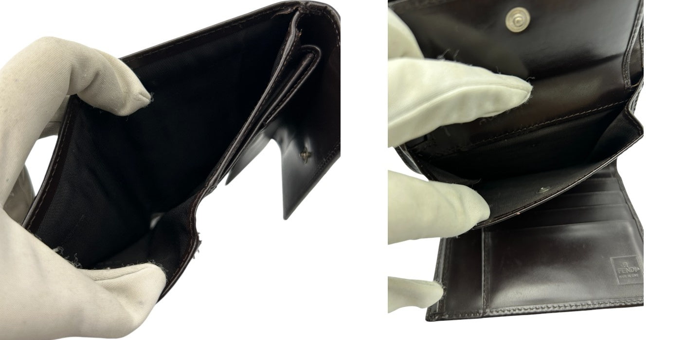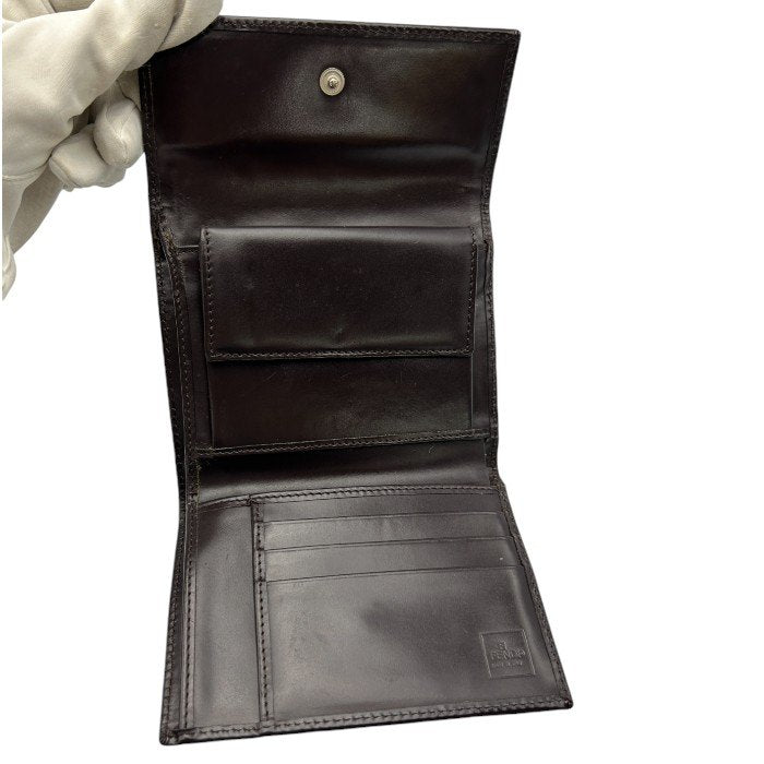 FENDI フェンディ ズッカ 財布 三つ折り ブラウン レディース ブランド コンパクト レザー ウォレット 中古 W4
