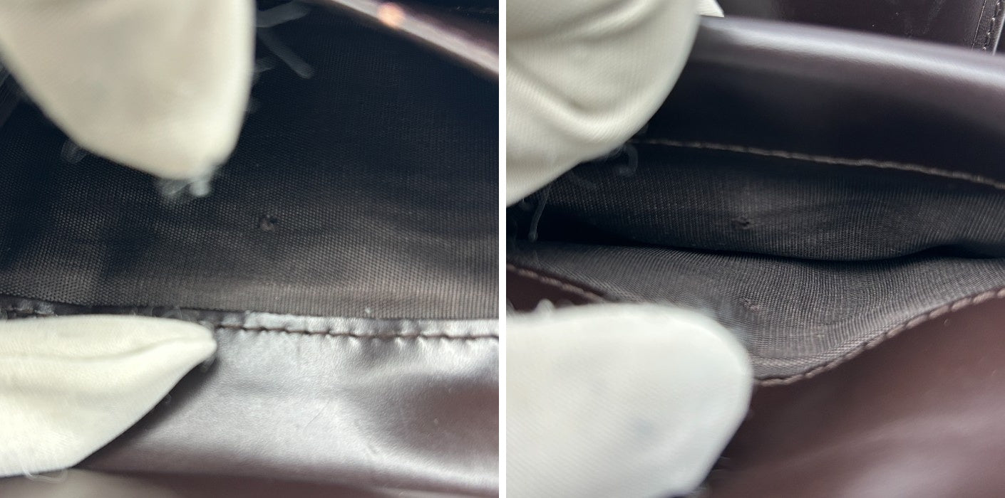擦れやキズ、汚れ等使用感がございますが、まだまだご愛用いただけます。 小銭入れに小さな穴があいています。 |