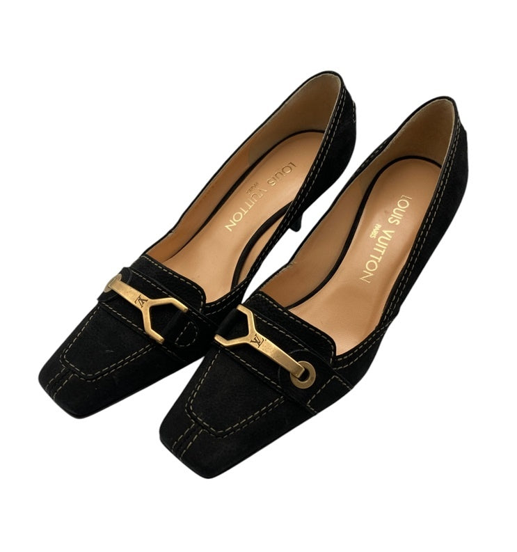 LOUIS VUITTON ルイヴィトン スエード パンプス サイズ37 ブラック 中古 D4