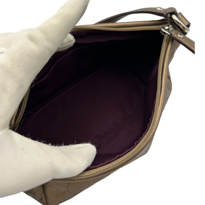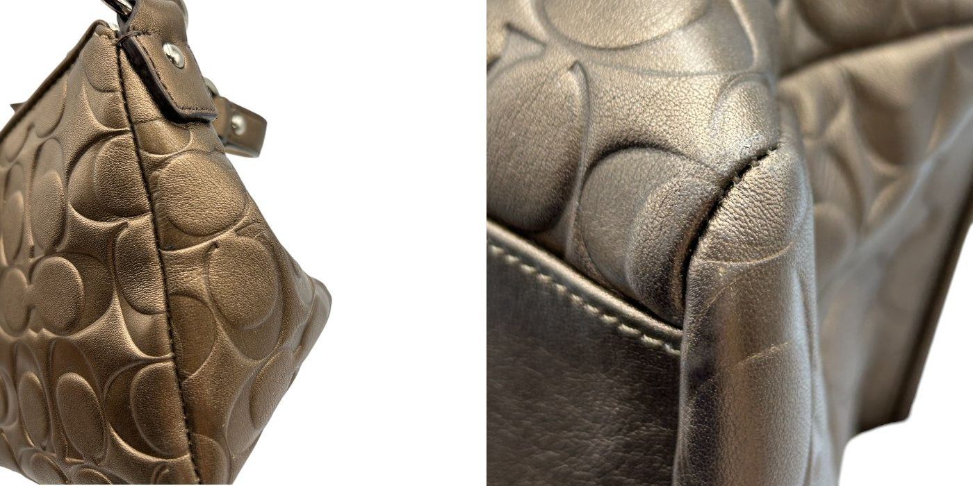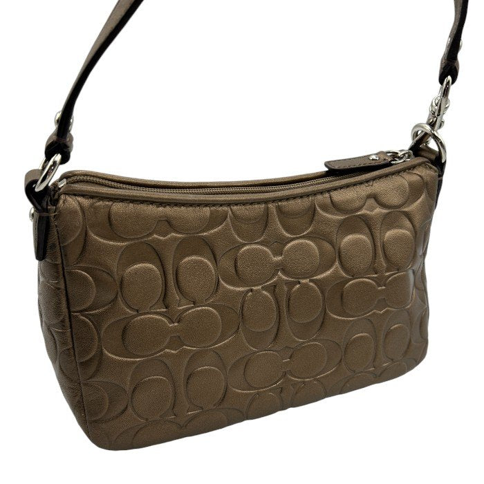 COACH コーチ ハンドバッグ レディース レザー エンボス ブロンズ ミニ 小さめ 型押し シグネチャー 総柄 中古 W4