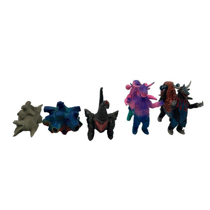 全体にベタつきがございます。(ベタつきが多かったり少なかったり個体差ございます。) キズや汚れはございますが、破損は見受けられませんでした。 一部パーツ(土台等)が欠品している場合がございます。写真で写っていないパーツは付属しません。 最後の写真の1体、2枚目のユートムは自立ができないです。 |