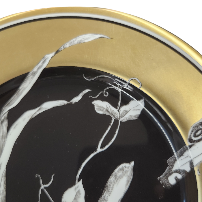 MINTON ミントン ROSENBORG ローゼンブルグ プレート 2枚セット 16.5cm ペア 陶磁器 金彩 花 ボタニカル ホワイト/ブラック/ゴールド ROSENB6P 中古 T1