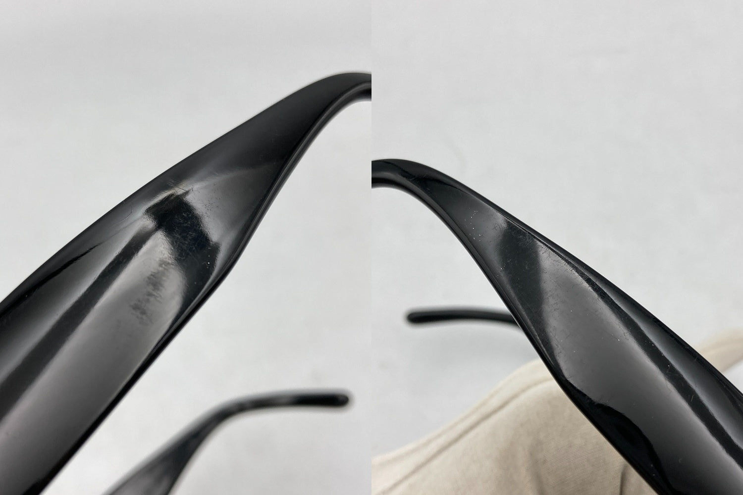 | サイズ | レンズ:横5.8×縦4.1cm、ブリッジ:1.3cm、テンプル:13.5cm、レンズ幅:13cm(ヒンジからヒンジまで) | |