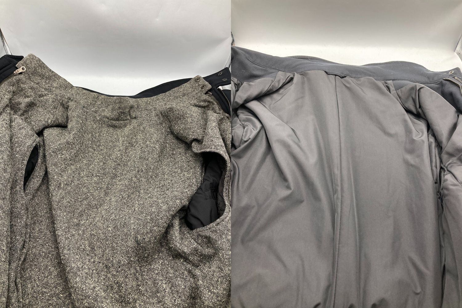ややシミや汚れがございます。 コートのファスナープルが欠品しております。 ジレのウールサイドに毛羽立ちや毛玉がございます。 |