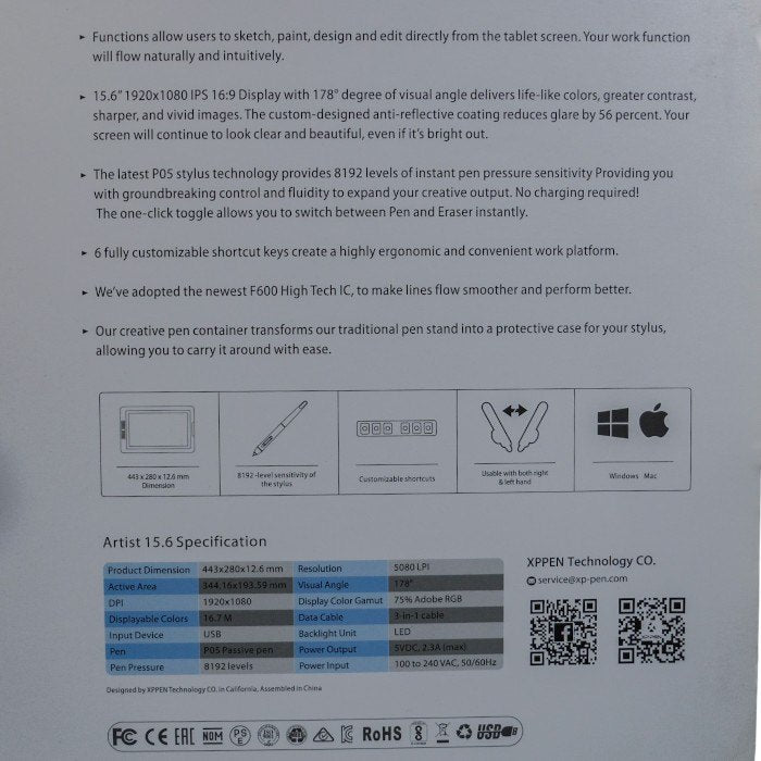 XP-pen Artist 15.6 液晶ペンタブレット 中古 a1