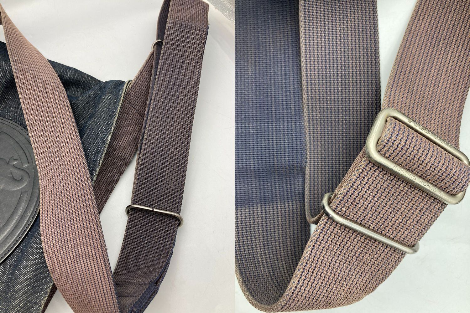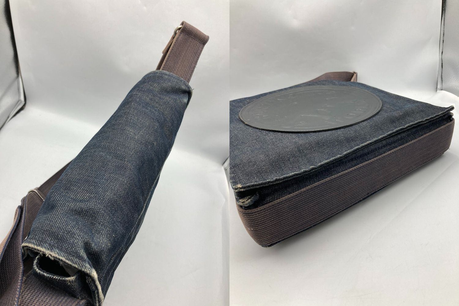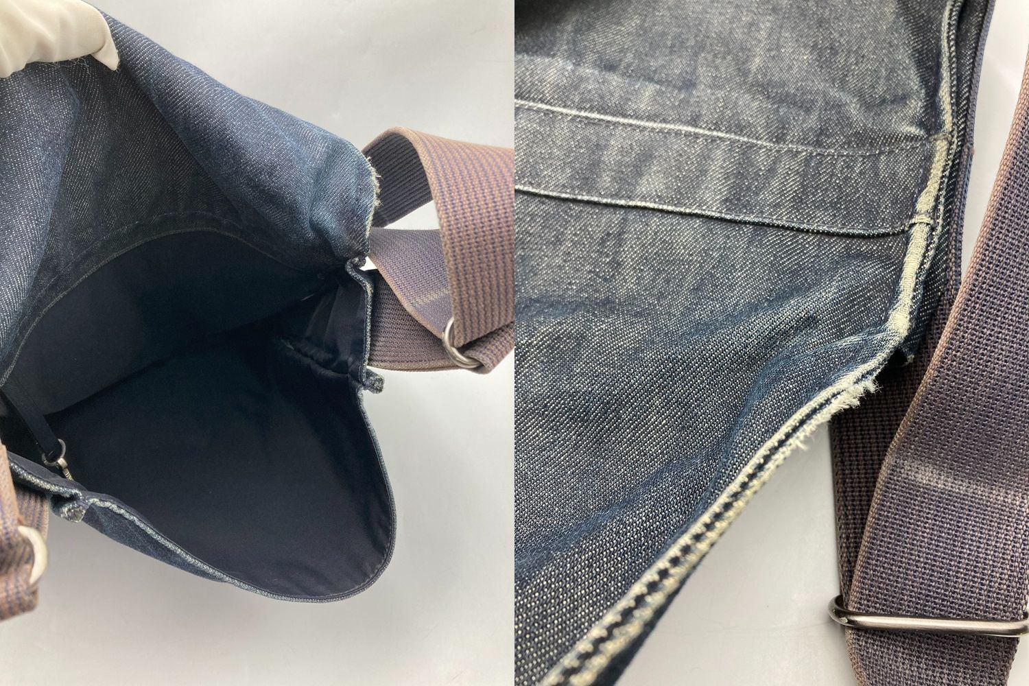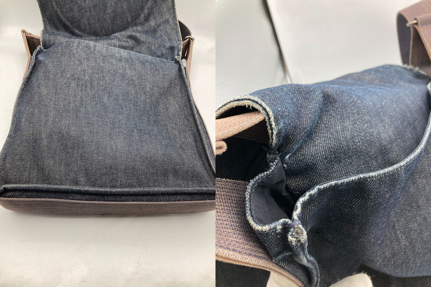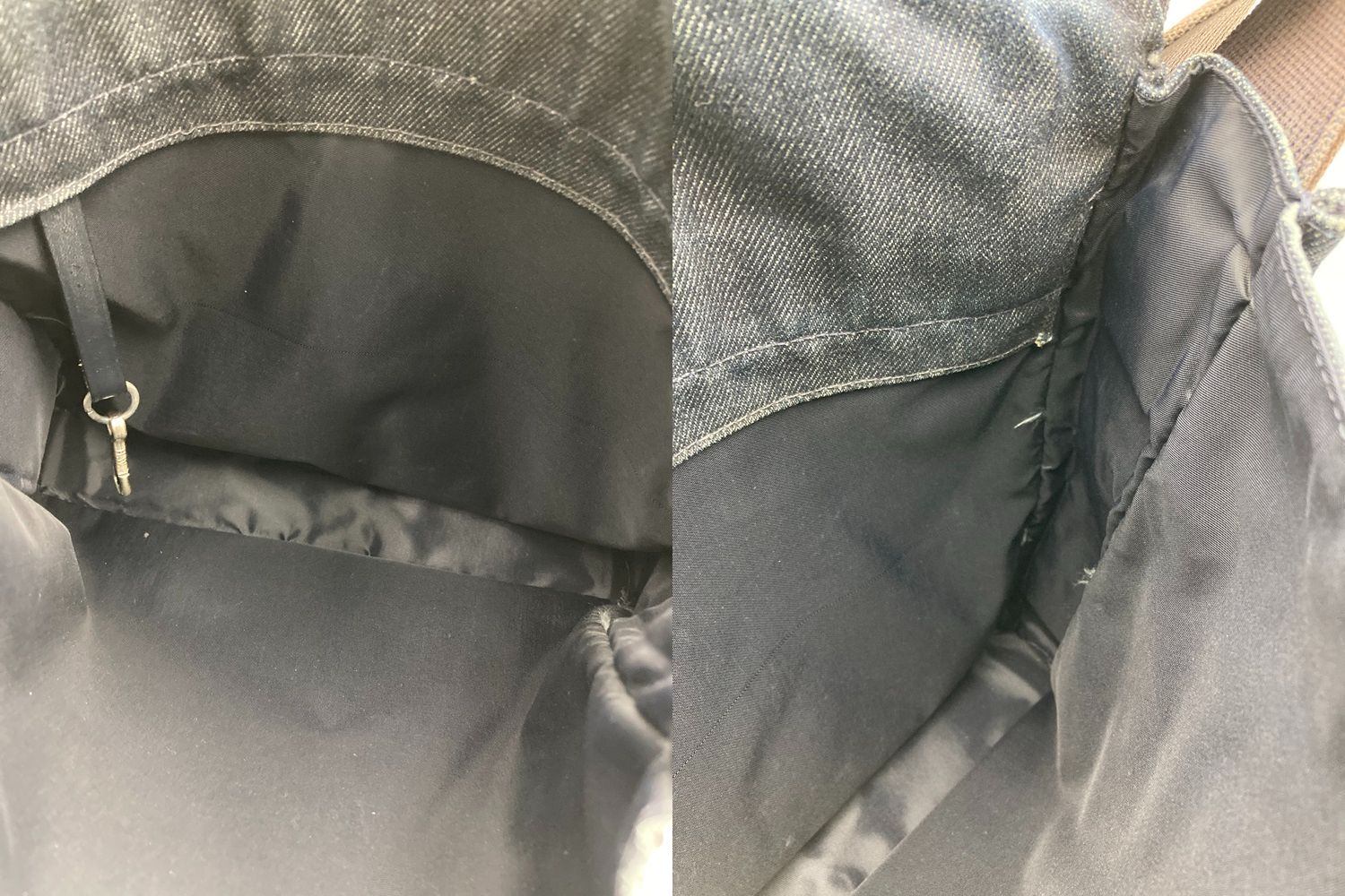 使用感がございます。 レザー部分のキズ、ヒビ割れやデニム地に角スレやアタリ、汚れがございます。 ショルダー紐に汚れや変色がございます。 |
