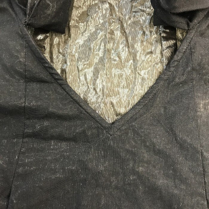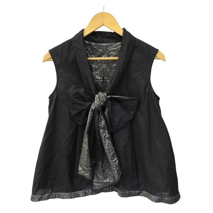 HaaT イッセイミヤケ ボウタイブラウス レディース コットン ノースリーブ ラメ リボン ブラック/ブラウン 2サイズ HA91FJ522 中古 T1