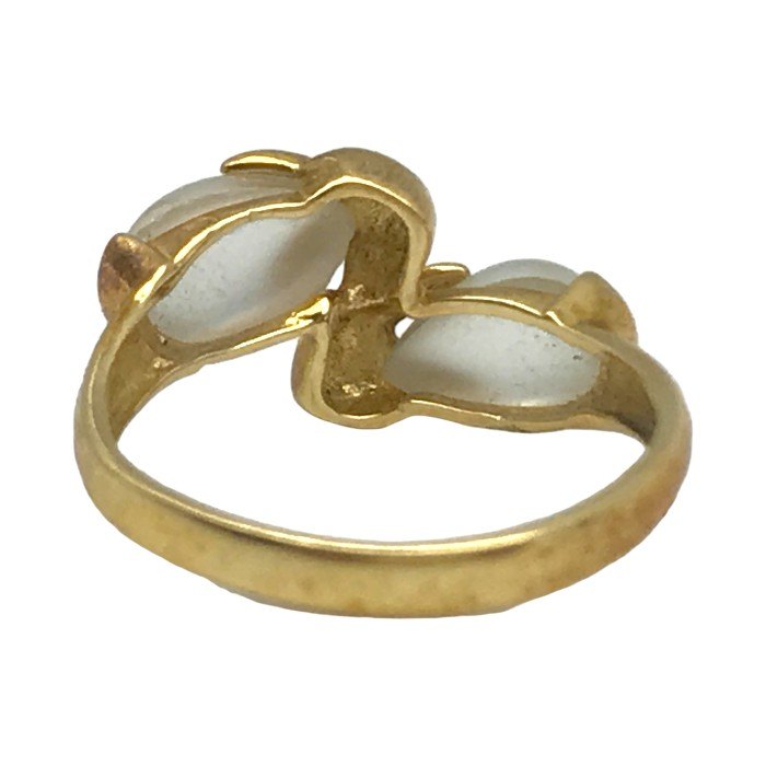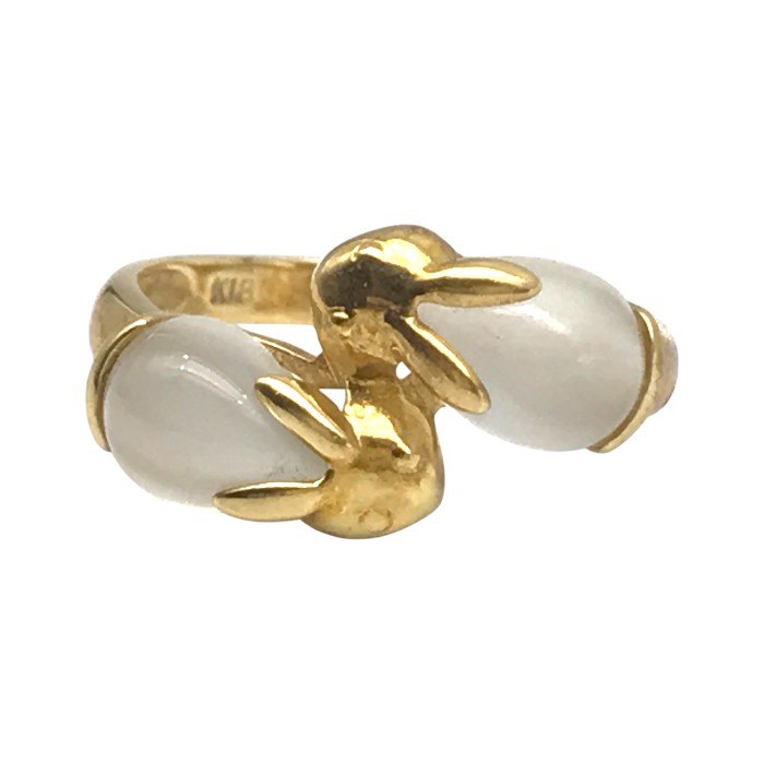 K18 リング レディース ウサギモチーフ 乳白色石 イエローゴールド 12号 中古 T1