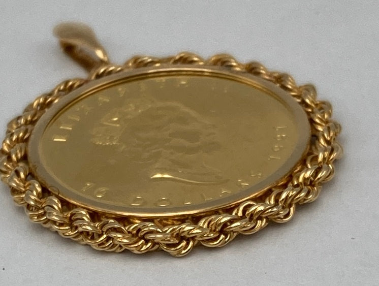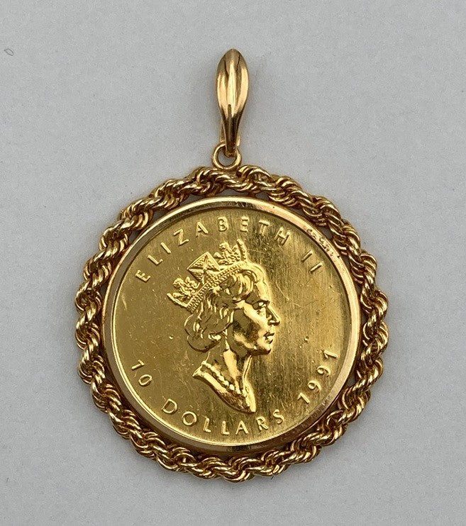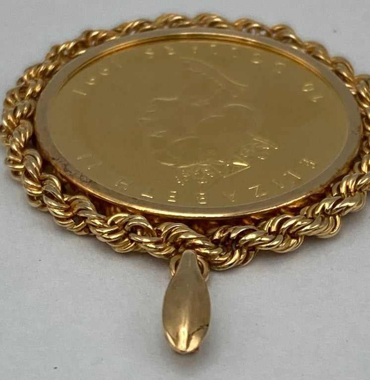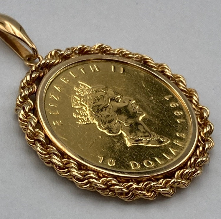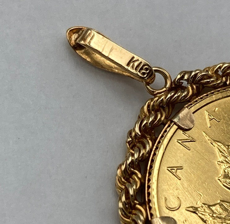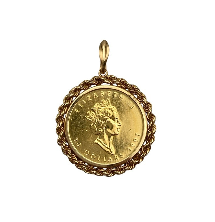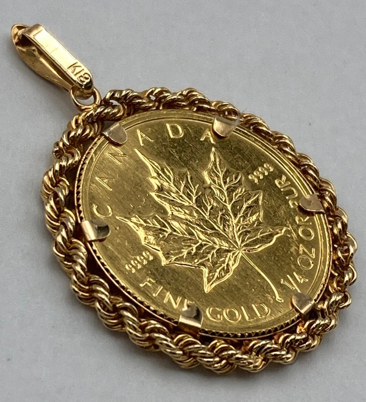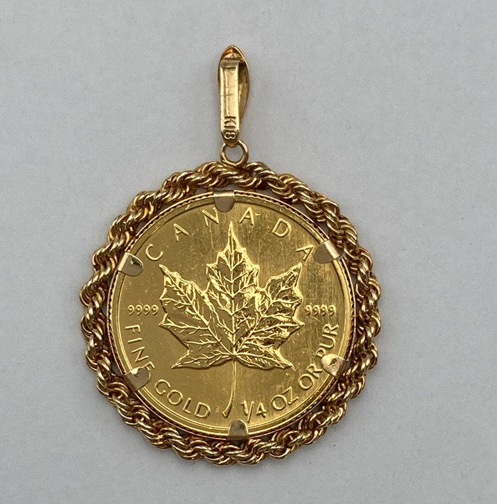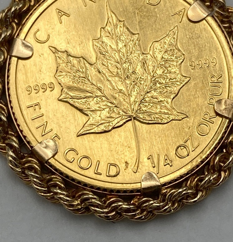 K24/18 純金コイン 1/4オンス メイプルリーフ エリザベス2世 ペンダントトップ 中古 D4