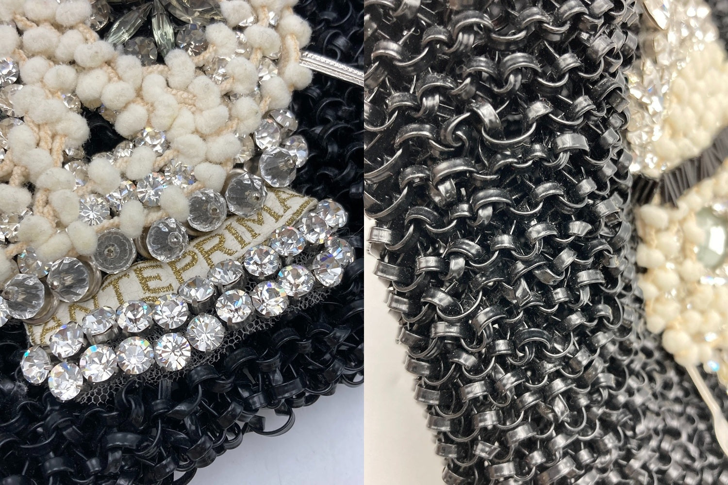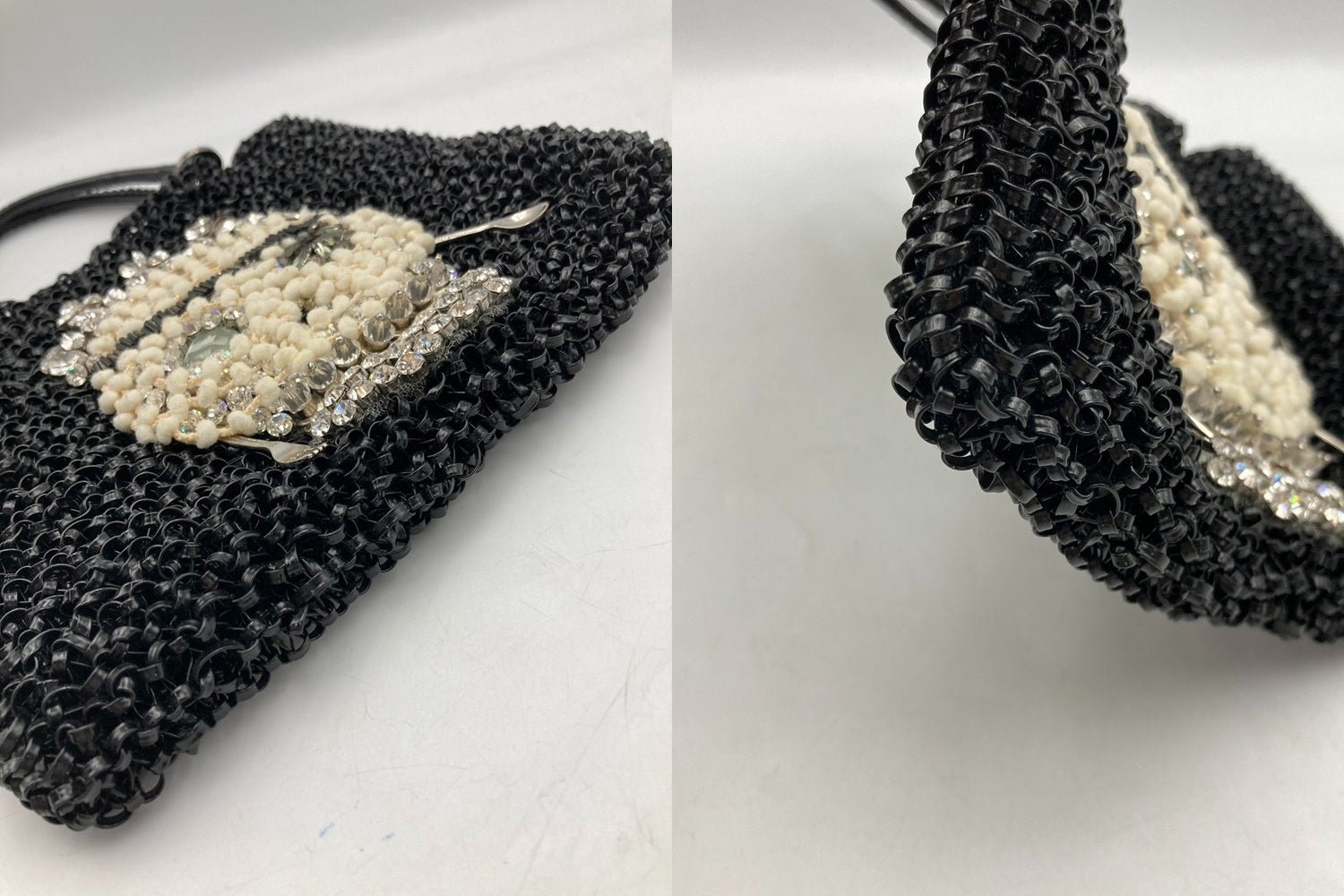ラインストーンがひとつ取れております。 若干のベタつき、ワイヤーの隙間に細かな付着がございます。 |