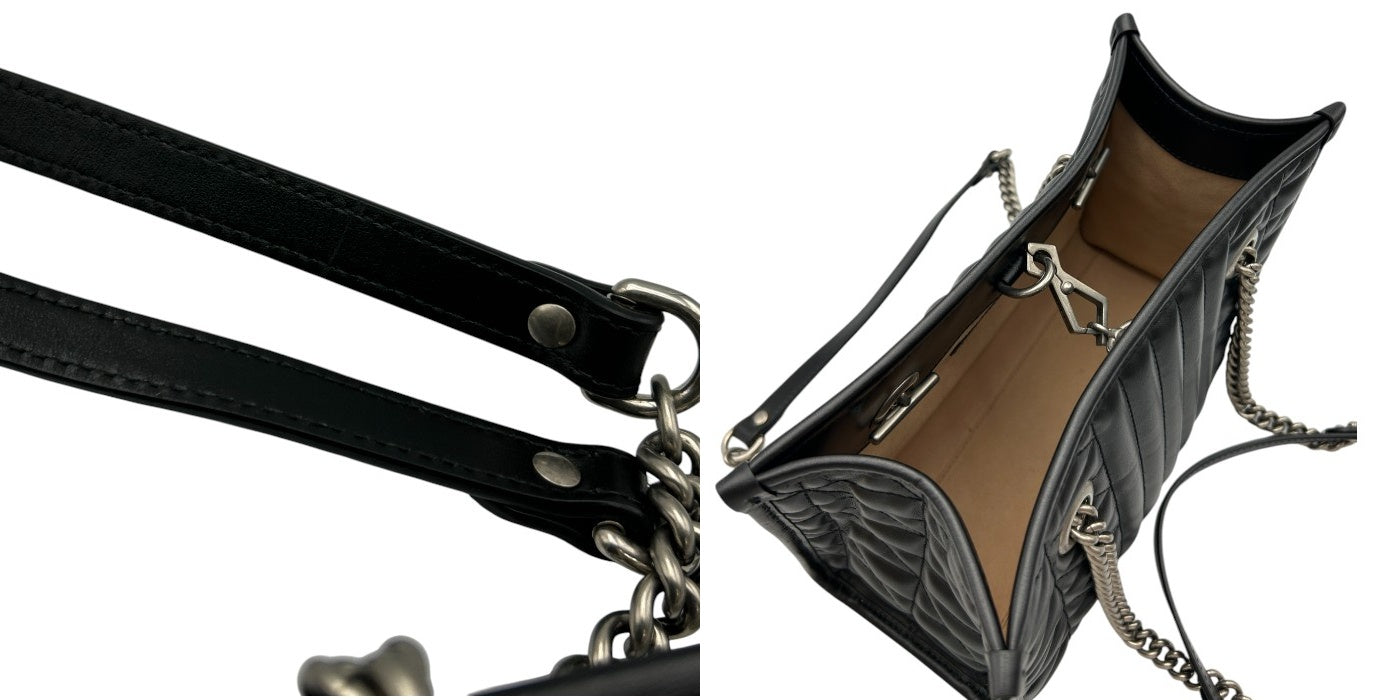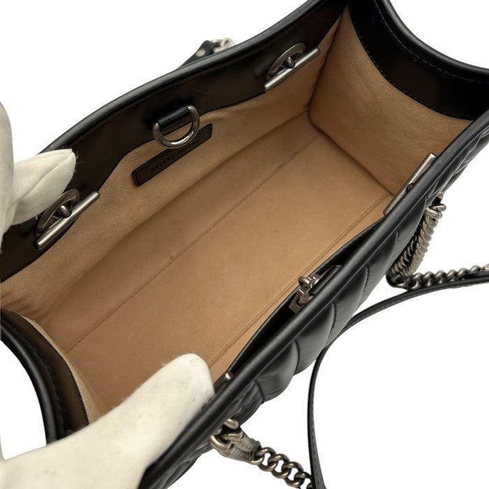 GUCCI グッチ GGマーモント スモール トートバッグ 681483 鞄 レザー 本革 レディース チェーン ブラック 中古 W4