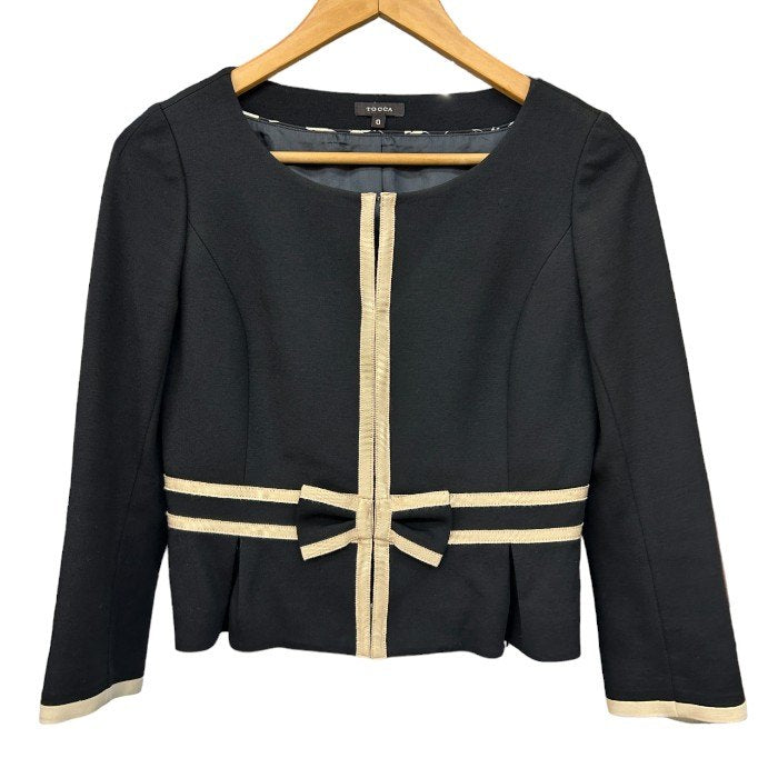 TOCCA トッカ ジャケット レディース リボン ノーカラー ブラック 0サイズ TOIA1800 アウター 春 かわいい フェミニン 中古 W4