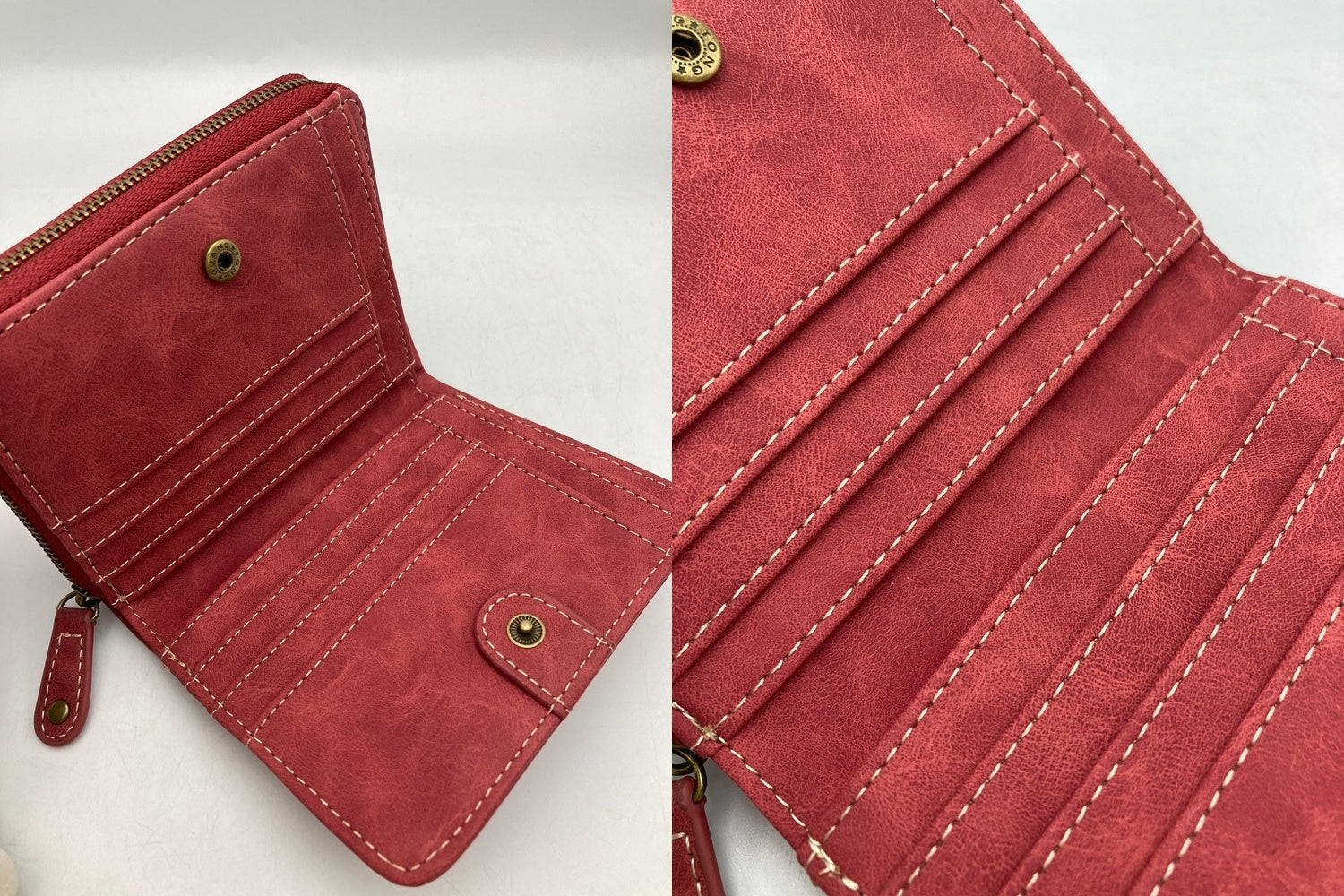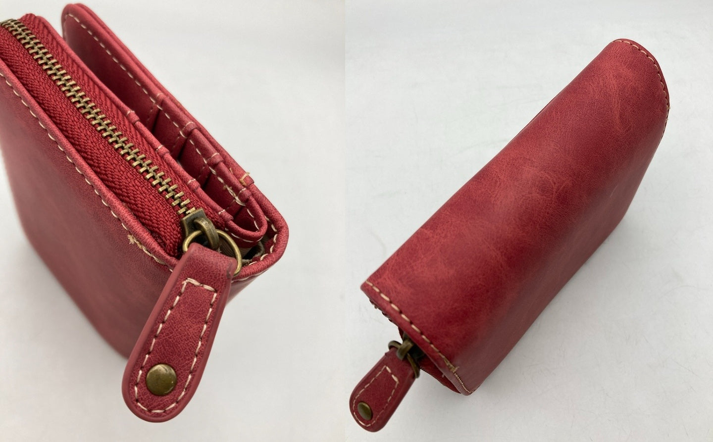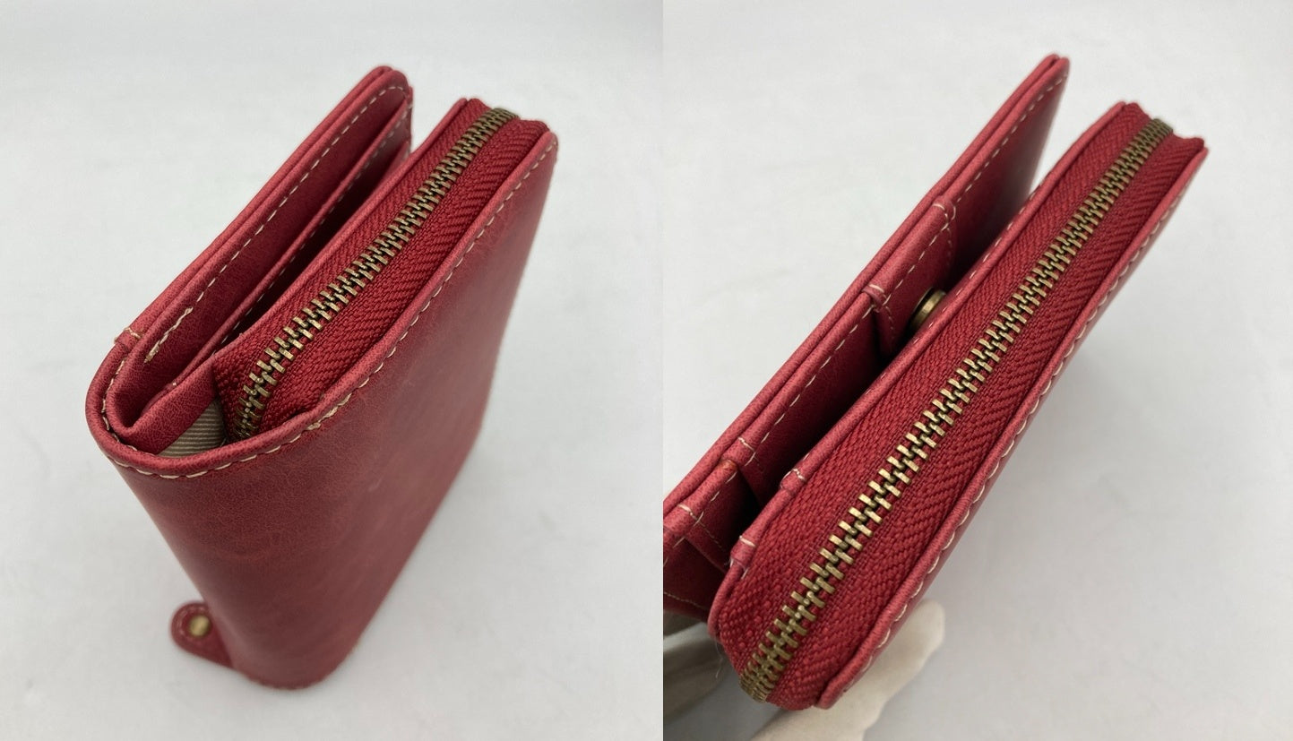 SNOOPY スヌーピー 2つ折り財布 コンパクト ラウンドファスナー 刺繍 レッド 中古 D4